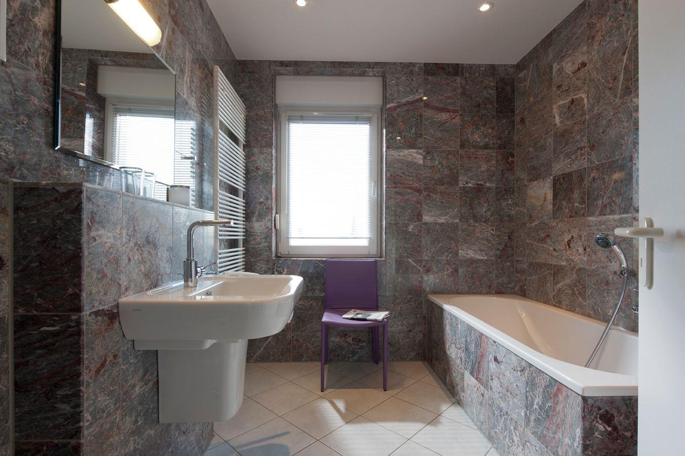 Die Wohnung ist mit zwei luxuriösen Badezimmer mit edlen Marmorfliesen versehen und verfügen über Fußbodenheizung. Während das eine Badezimmer mit einer großzügigen Dusche ausgestattet ist, lädt das zweite mit einer Badewanne zu entspannten Wellnessmomenten ein. Beide Bäder bieten zudem ein WC.