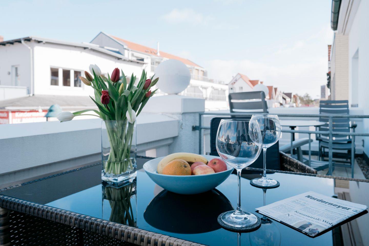 Von dem hellen Wohnbereich gelangen Sie auf den Nord-West Balkon, der Ihnen am Nachmittag und den Abendstunden Sonne bietet.