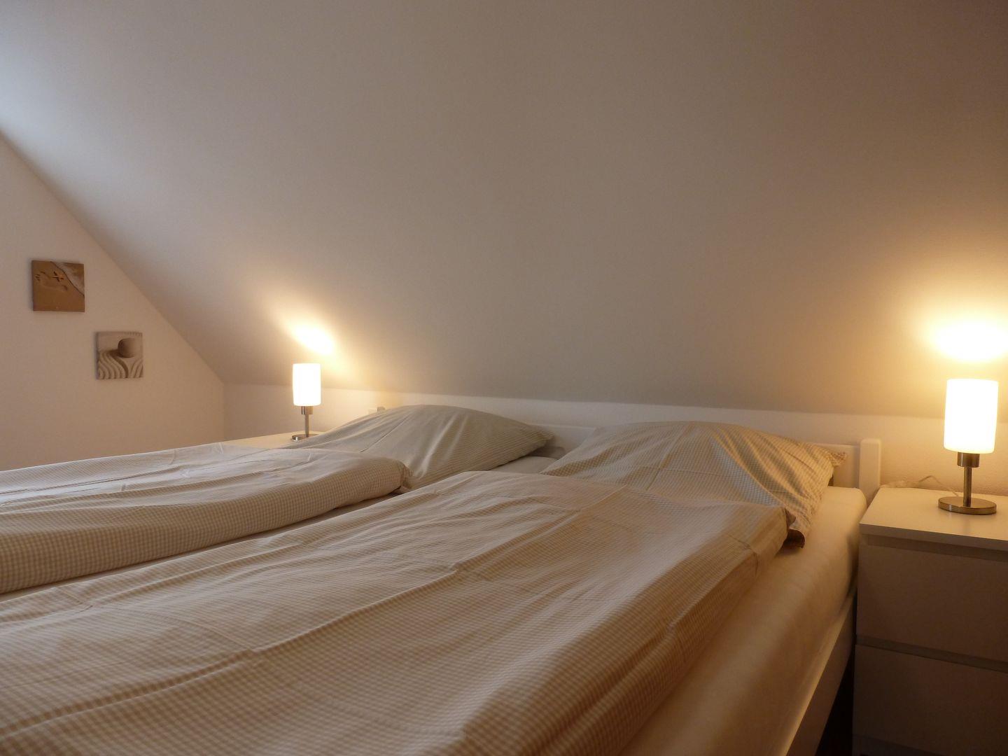 Das Schlafzimmer ist mit einem Doppelbett ausgestattet.