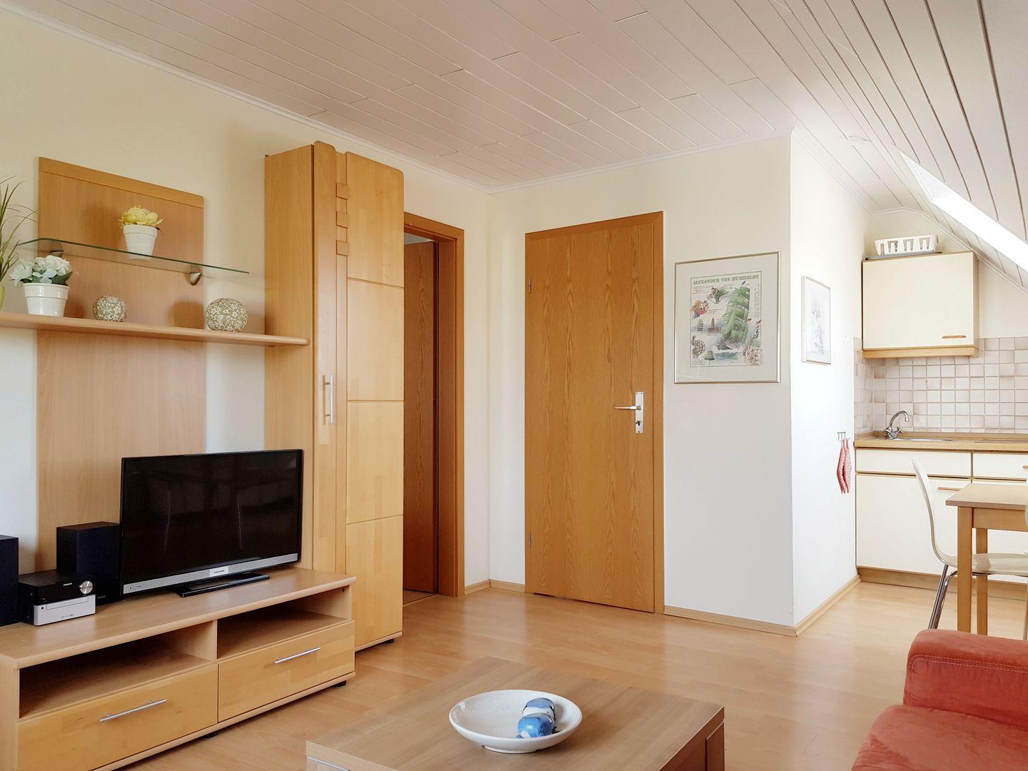Diese gemütlich eingerichtete 2-Zimmer Wohnung von ca. 28 m² mit teilweise schrägen Wänden befindet sich im 2. Obergeschoss und bietet Komfort und Gemütlichkeit auf kleinem Raum für bis zu zwei Personen.