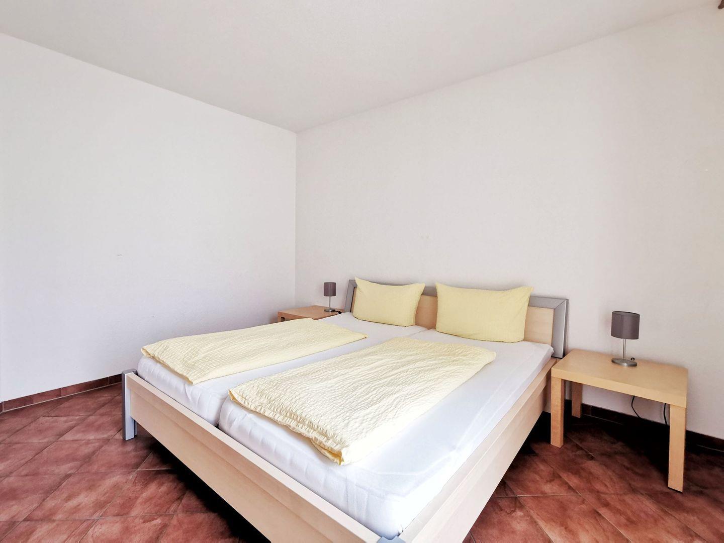 Im separaten Schlafzimmer befindet sich ein komfortables Doppelbett, das zusammen mit den Sofas im Wohnraum vielseitige Schlafmöglichkeiten bietet. Das moderne Badezimmer ist mit Dusche, WC, Fußbodenheizung und Handtuchheizkörper ausgestattet.