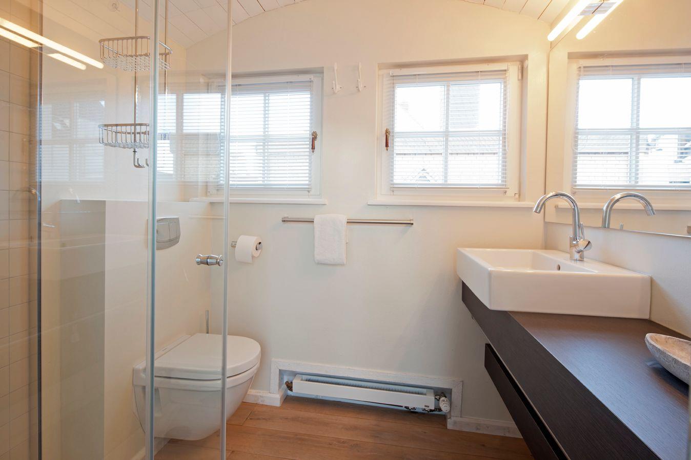 Beide Badezimmer verfügen über eine große Duschnische mit Raindance, außerdem sind in beiden Bädern Fenster eingebaut, die für Helligkeit und frische Luft sorgen.