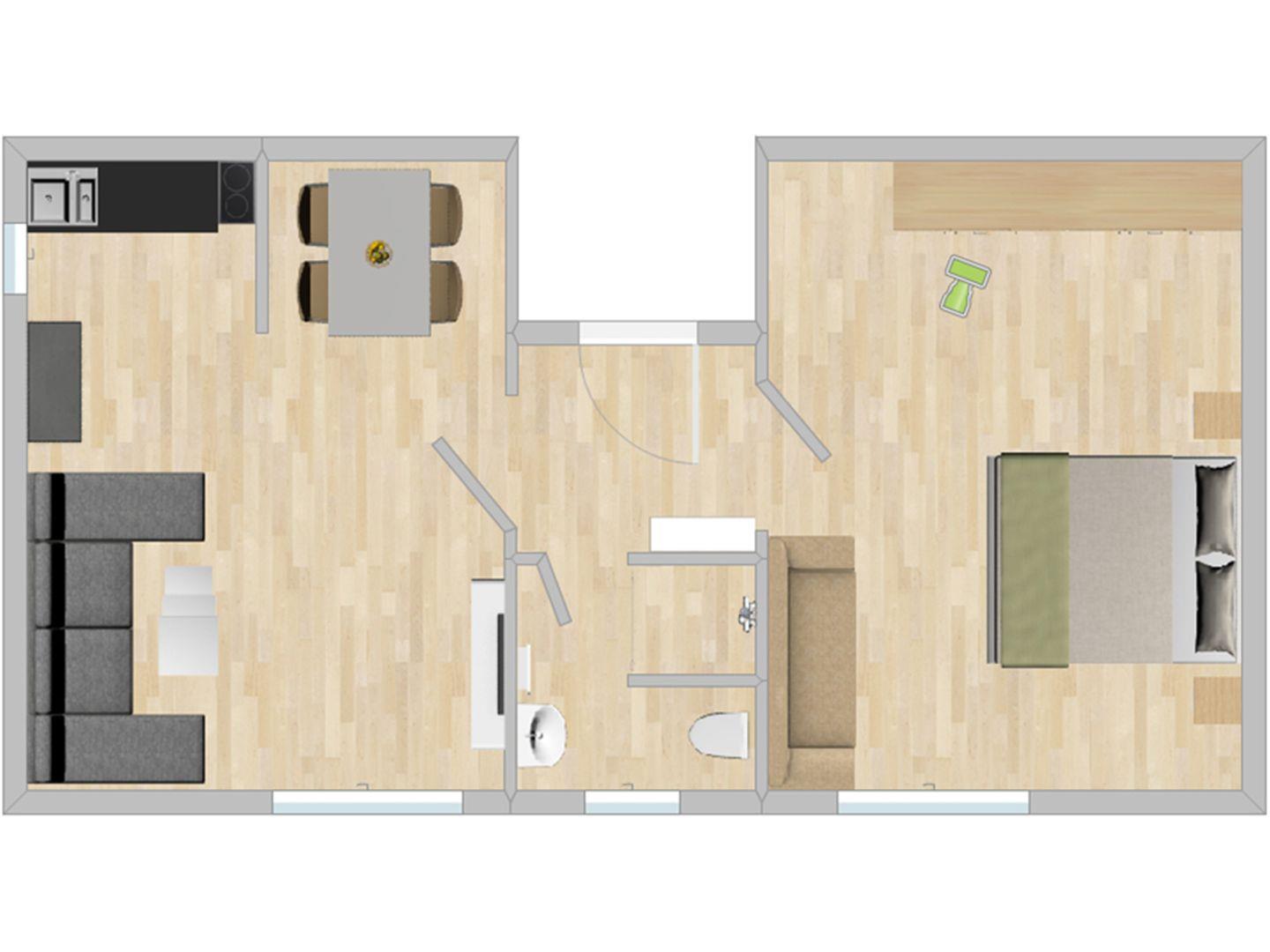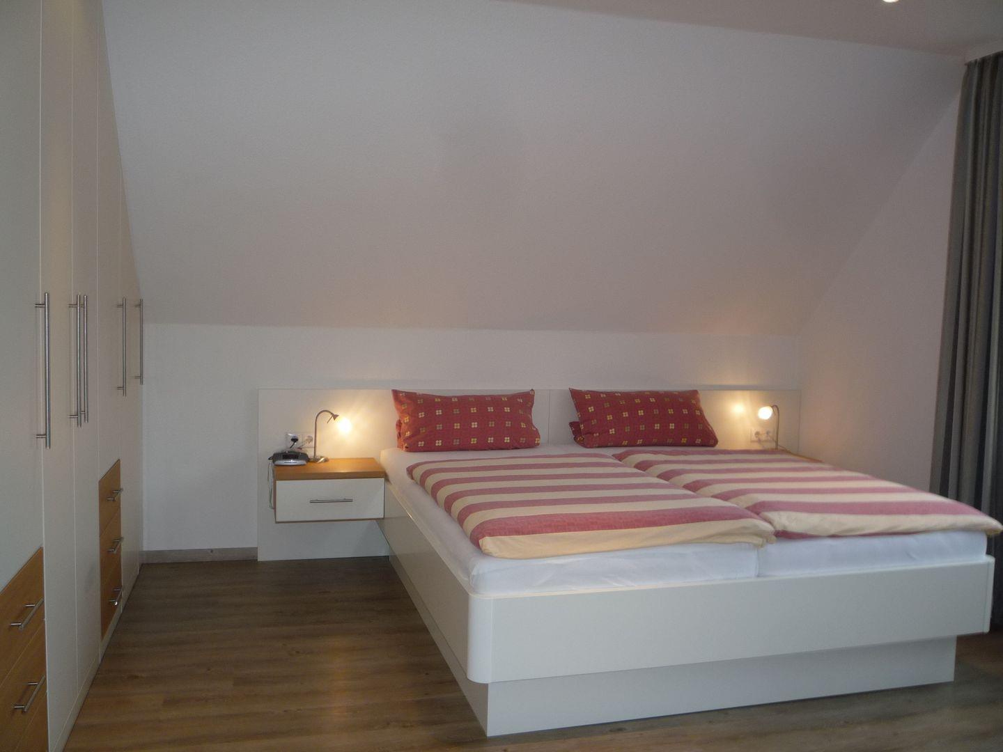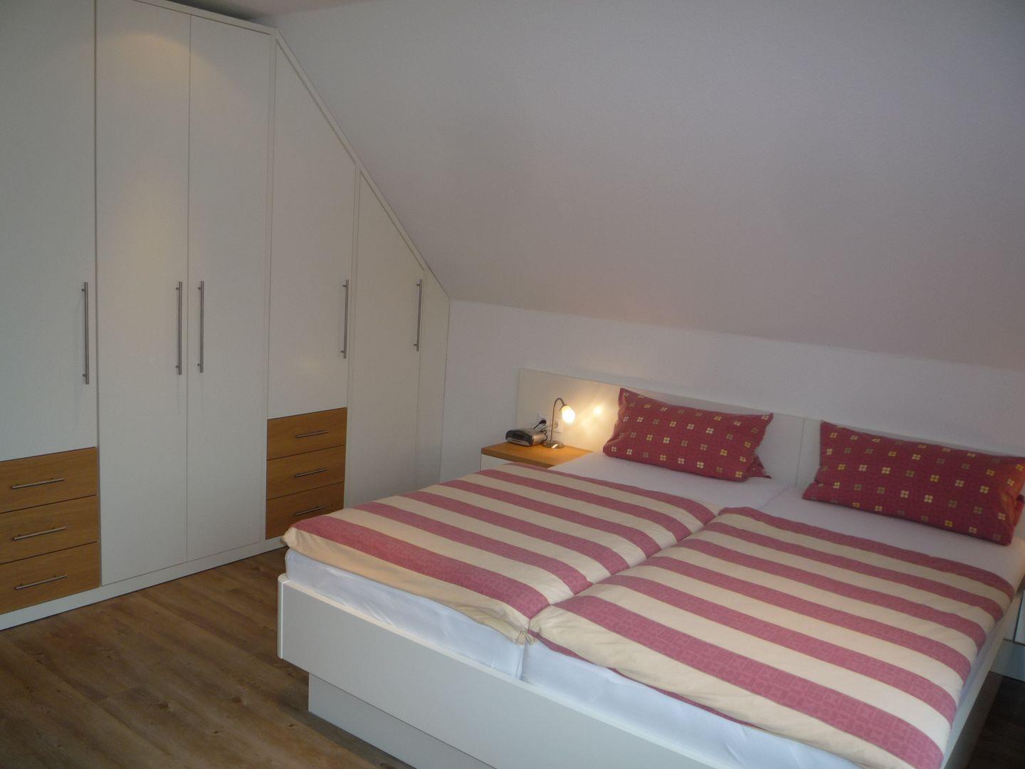 Eine 2-Raum-Ferienwohnung mit teilweise schrägen Wänden, für max. 3 Personen im 1. OG mit ca. 45 m² Wohnfläche.