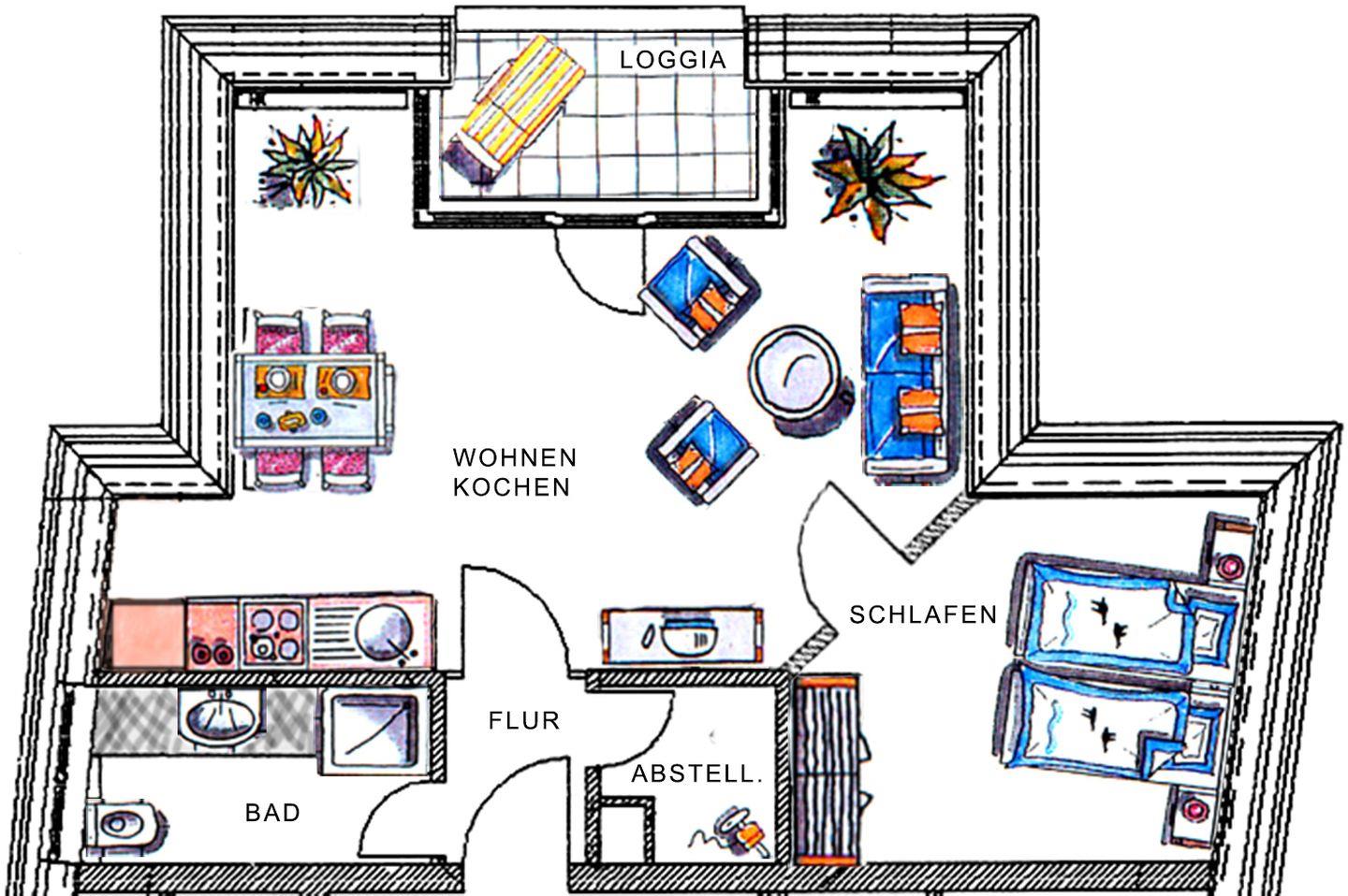Möglich und preiswert für die Familie in dieser 60 m²-Wohnung. Familien mit bis zu 4 Personen entdecken hier ihre Lust auf Ostfriesland. Allein das Klima mit der richtigen Brise zur richtigen Zeit macht Norderney spannend.