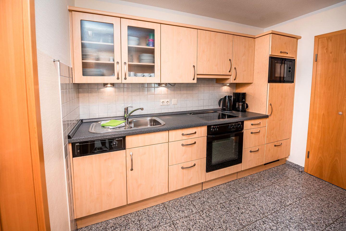 In der separaten komplett ausgestatteten Küche finden sich unter anderem alle Küchengeräte wie Backofen, Cerankochfeld, Kühlschrank mit Gefrierfach, Geschirrspülmaschine, Mikrowelle, Kaffeemaschine, Toaster, Wasserkocher u.s.w.