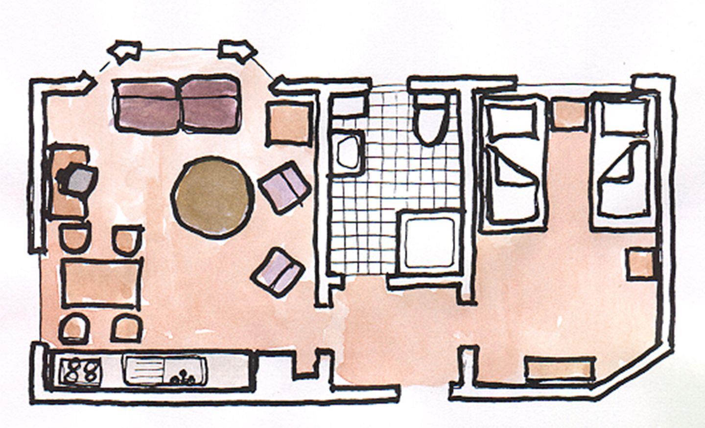 Die Wohnung verfügt über ein separates Schlafzimmer mit einem komfortablen Doppelbett – perfekt für erholsame Nächte. Der Wohnbereich ist gemütlich eingerichtet und lädt mit einem TV, Radio und einem ausziehbaren Sofa zum Entspannen ein. Das Sofa lässt sich schnell und unkompliziert in eine bequeme Schlafgelegenheit für zwei weitere Personen verwandeln.