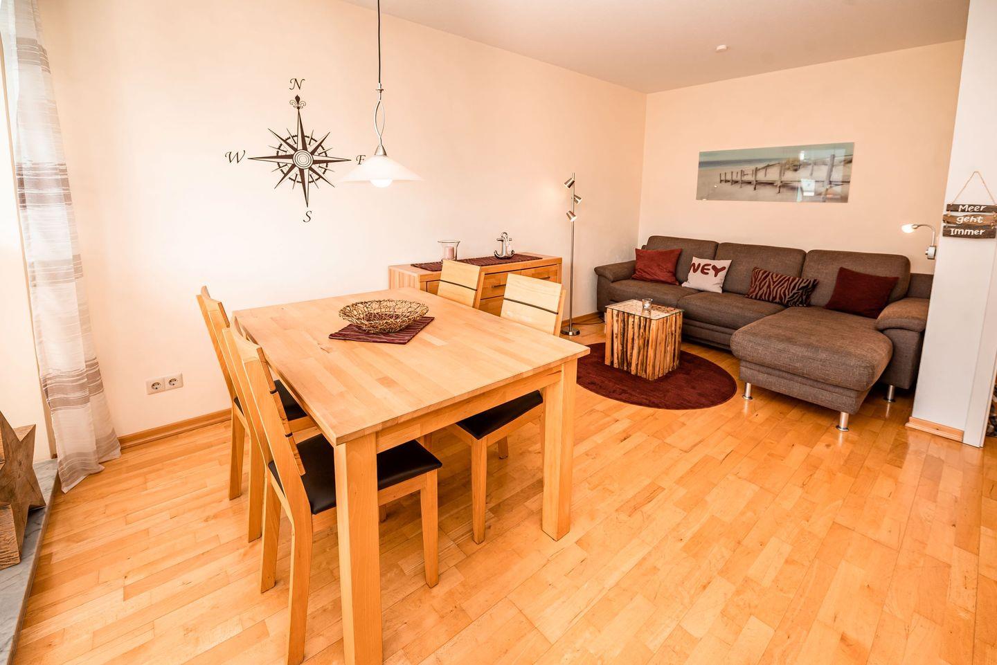 Die geschmackvoll eingerichtete Wohnung ist vollständig mit Parkett ausgelegt und bietet ein gemütliches Ambiente für Ihren Urlaub.