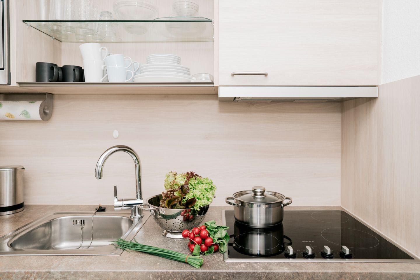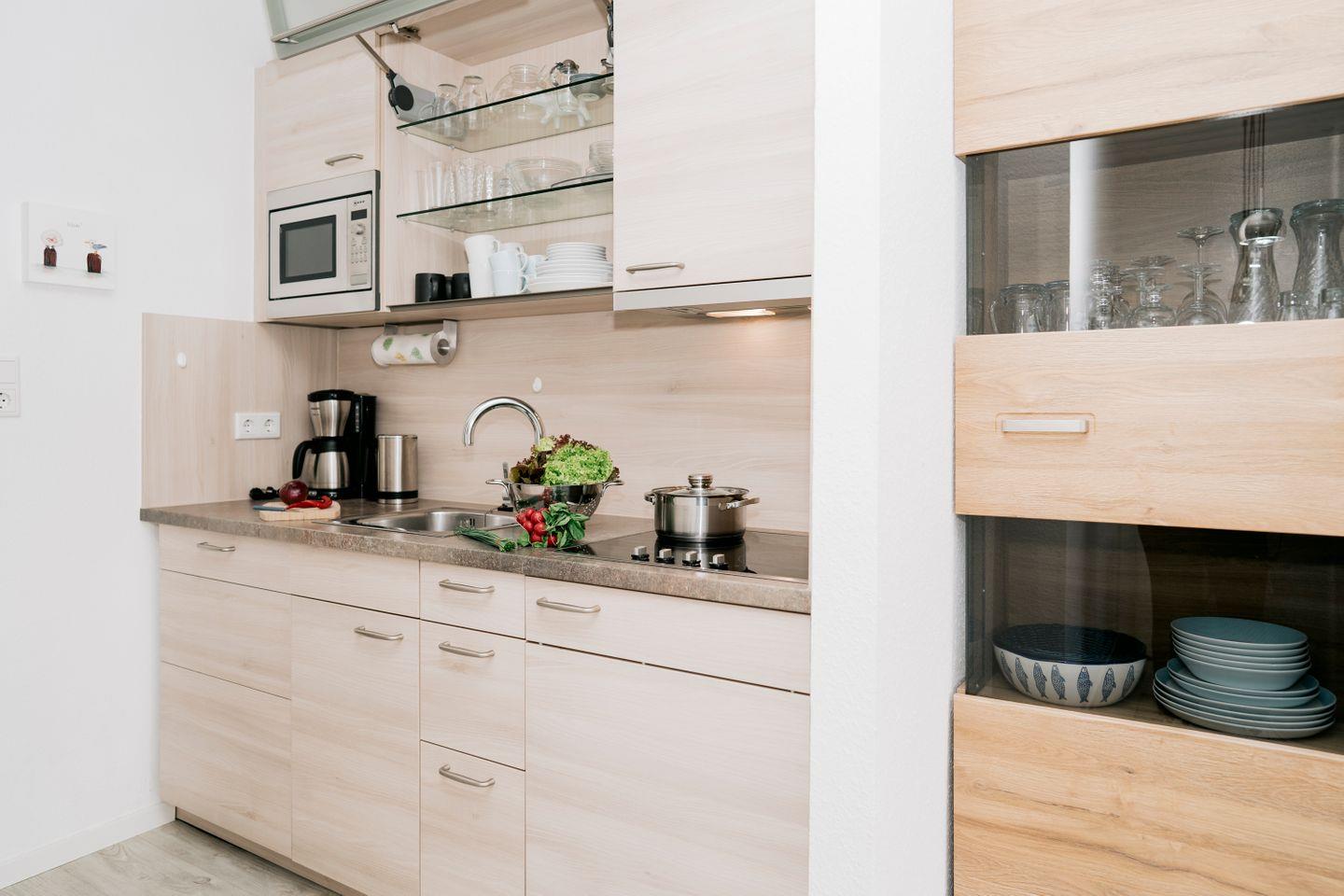 Diese modern eingerichtete 1-Raum-Wohnung befindet sich im 1. Obergeschoss und ist bequem über einen Aufzug erreichbar. Die frisch renovierte Wohnung besticht durch eine helle und freundliche Atmosphäre sowie eine gut ausgestattete, in den Wohnraum integrierte Küchenzeile mit einem 4-Platten-Ceran-Kochfeld, Mikrowelle, Geschirrspüler und Kühlschrank mit Gefrierfach.