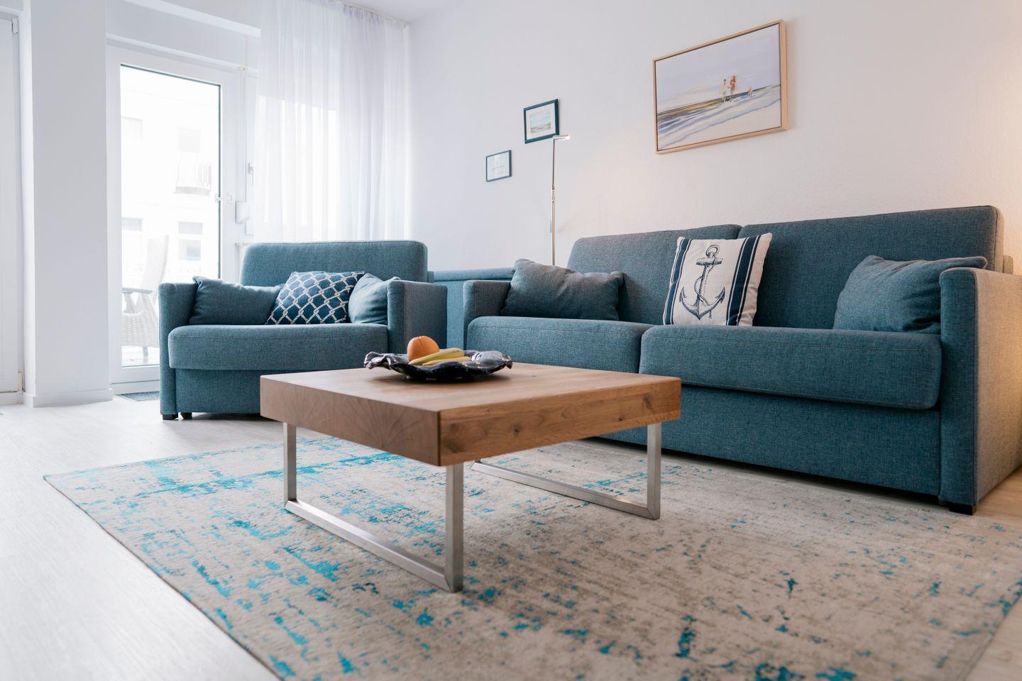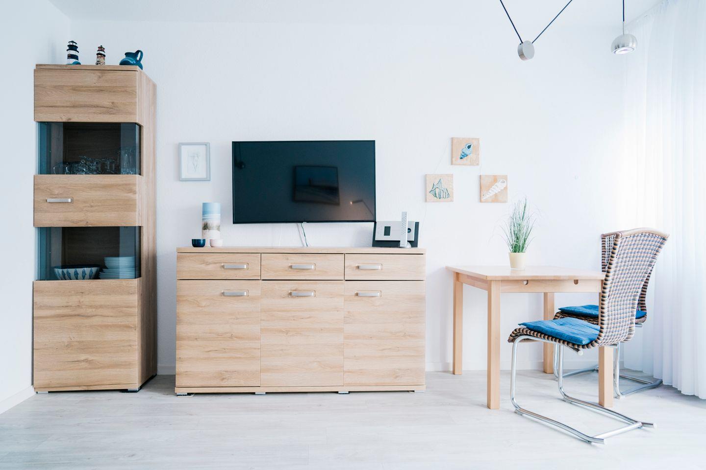 Der Wohnbereich ist mit einem komfortablen Schlafsofa (1,80 x 2,00 m) mit freiem Fußteil ausgestattet und bietet ausreichend Platz für bis zu 2 Personen. Ein Essplatz für 3 Personen, ein TV sowie eine Stereoanlage sorgen für zusätzlichen Komfort. WLAN steht kostenfrei zur Verfügung.