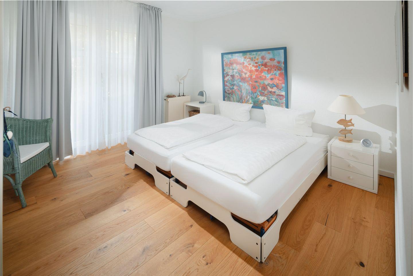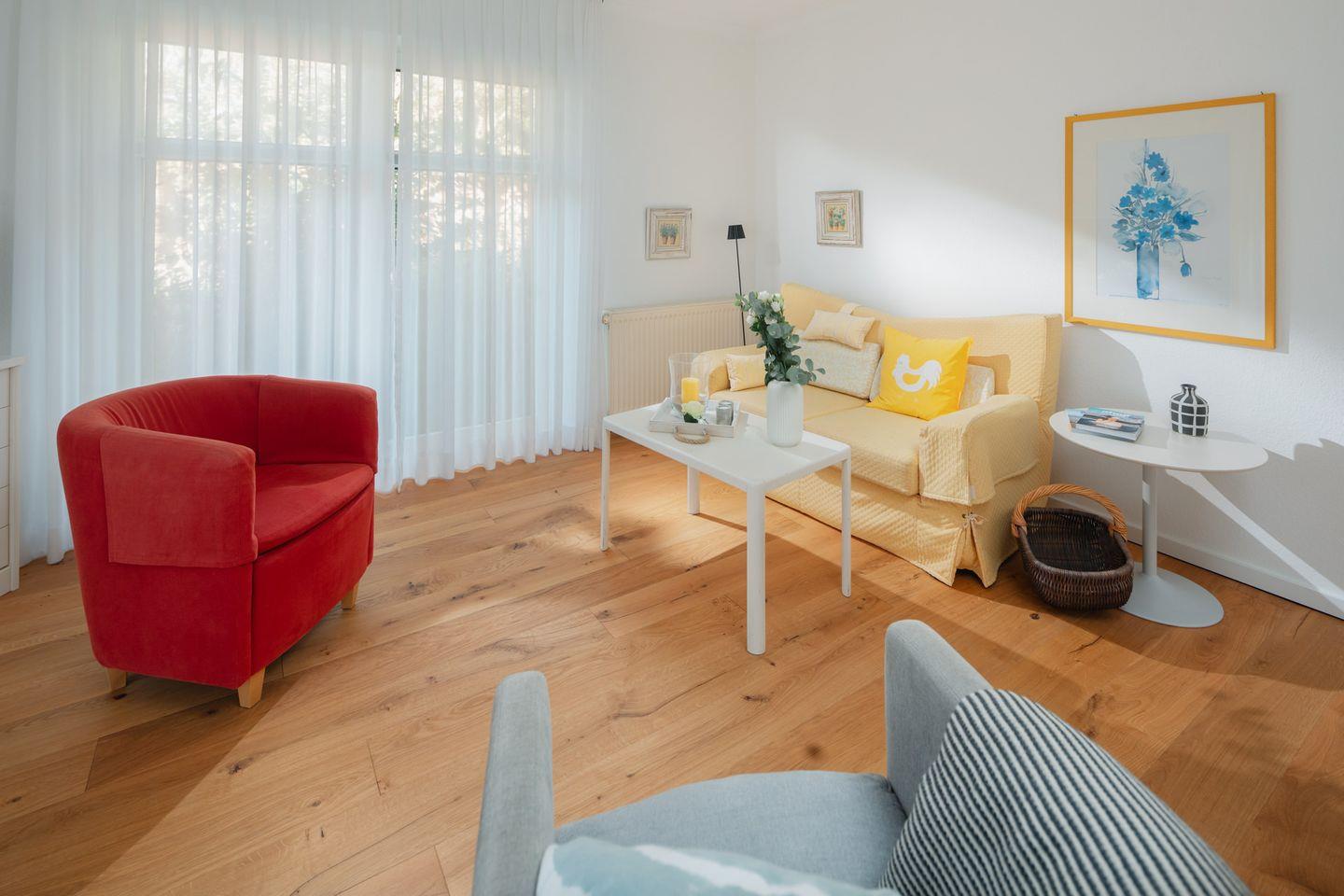 Die Ferienwohnung "Gartenstrasse 24" liegt, wie der Name es vermuten lässt, in der Gartenstraße. Die Wohnung ist ca. 59 qm groß und hat Platz für bis zu 2 Personen. Daher eignet diese sich besonders für Paare, Einzelreisende oder kleine Familien. Ein Kinder-Reisebett kann gebucht und im Schlafzimmer aufgestellt werden. Die Wohnung befindet sich ca. 700m vom Strand und ca. 600m vom Kurplatz entfernt.