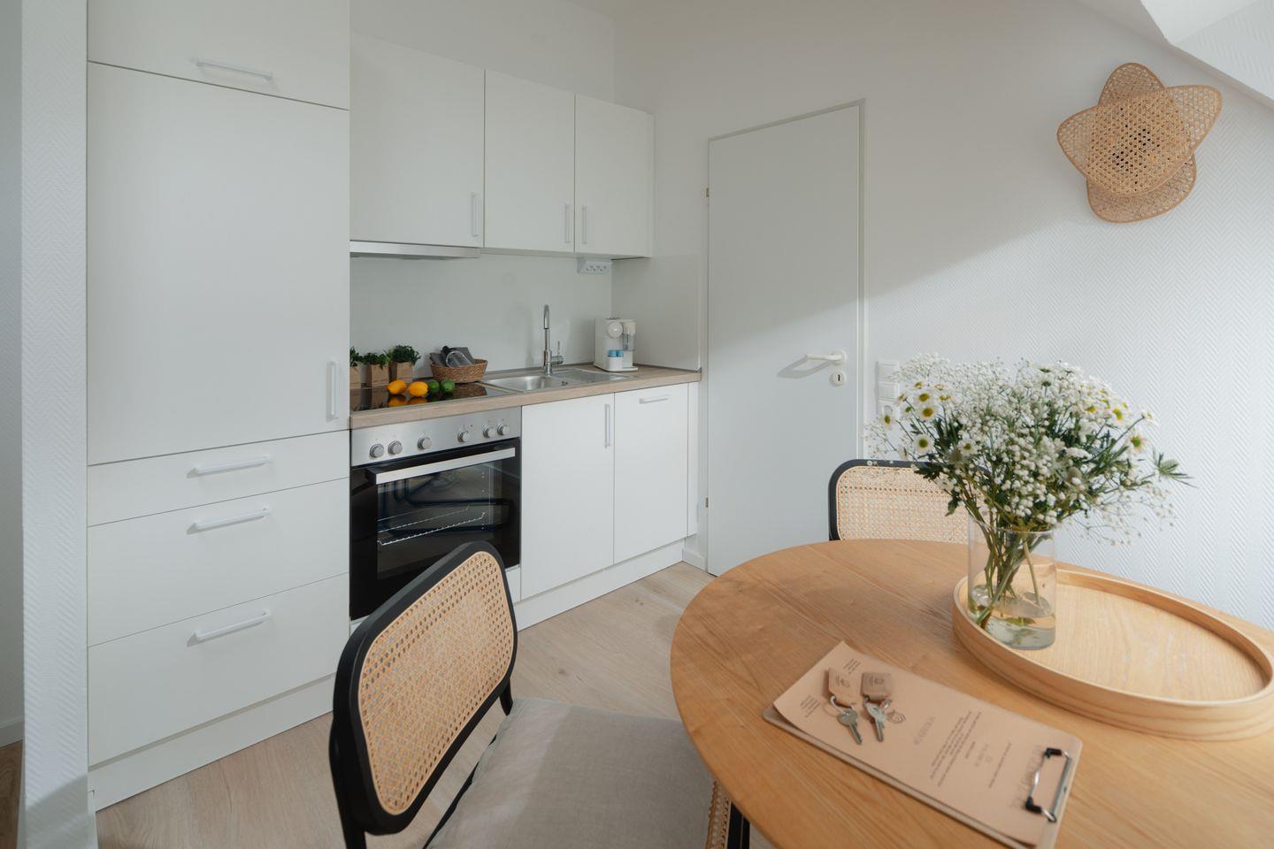 Das Tageslichtbad ist mit einem Waschbecken, einem WC sowie einer Dusche ausgestattet. Im gemütlichen Wohnzimmer mit offener Küche erwartet Sie ein Schlafsofa der Größe 160x200cm, welches auch als Schlafmöglichkeit dienen kann. Die Küche ist umfassend ausgestattet mit Kühlschrank, Gefrierfach, Backofen, Ceranfeld, Spülmaschine, Kaffeemaschine und einer Nespresso-Kapselmaschine. Bei Bedarf stellen wir Ihnen gerne eine Mikrowelle zur Verfügung.