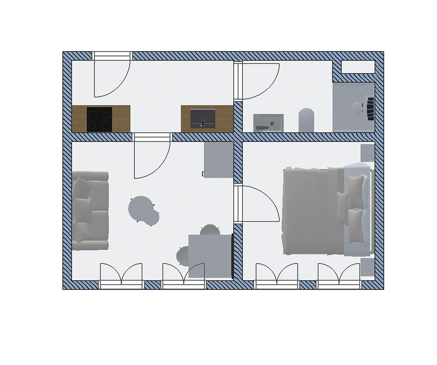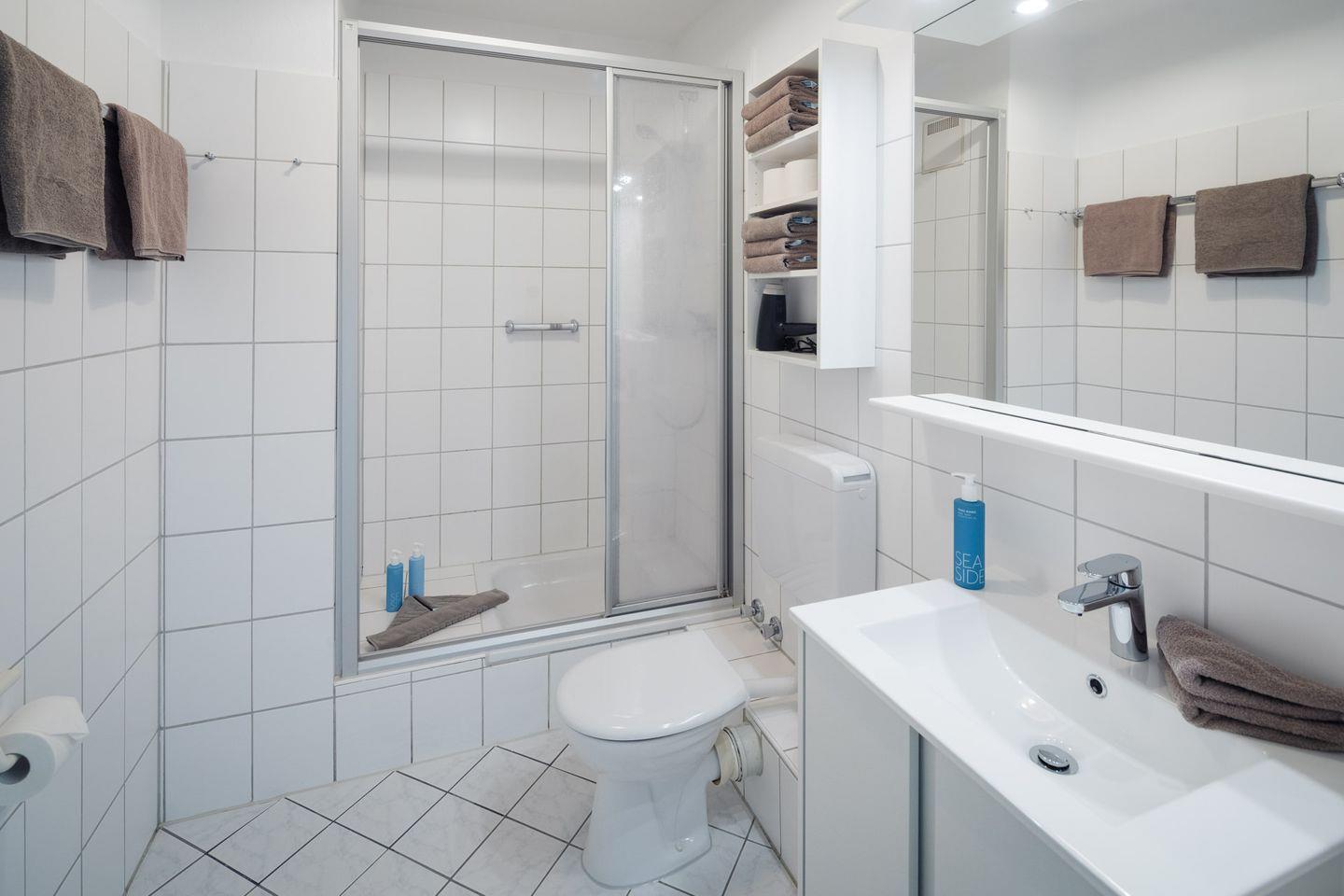 Das Badezimmer ist mit einem Waschbecken, einem WC sowie einer Dusche ausgestattet. Im gemütlichen Wohnzimmer erwartet Sie ein Schlafsofa der Größe 160x200cm, welches als Schlafmöglichkeit für eine weitere Person dienen kann. Die Küche ist umfassend ausgestattet mit Kühlschrank, Gefrierfach, Backofen, Ceranfeld, Spülmaschine, Kaffeemaschine und einer Nespresso-Kapselmaschine.