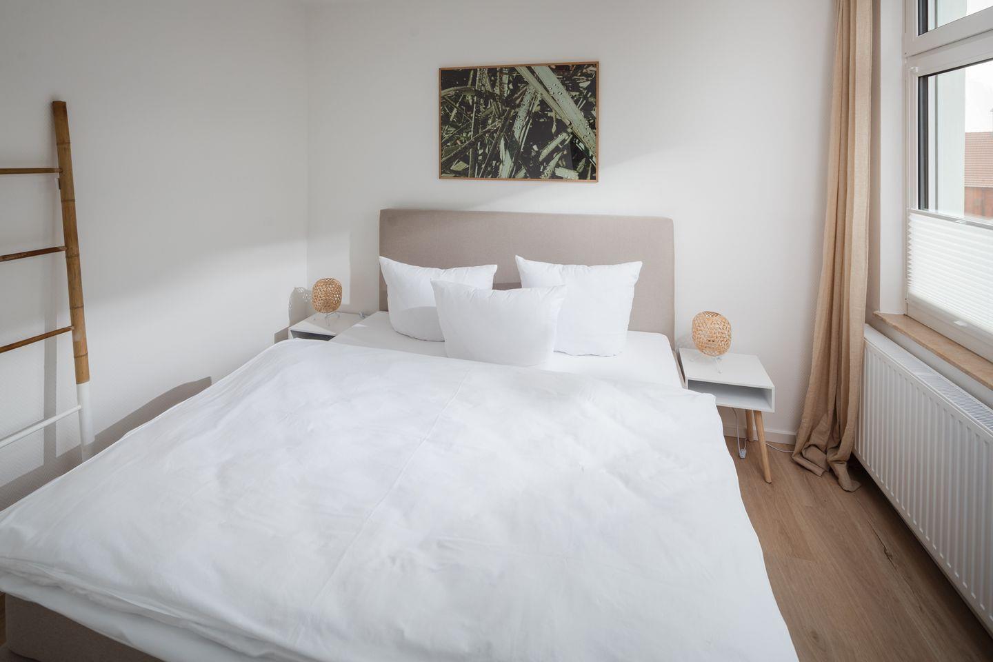 Die Wohnung ist komplett ausgestattet und bietet alles, was Sie für einen angenehmen Aufenthalt benötigen. Das Schlafzimmer verfügt über ein komfortables Boxspringbett der Größe 180x200cm.
