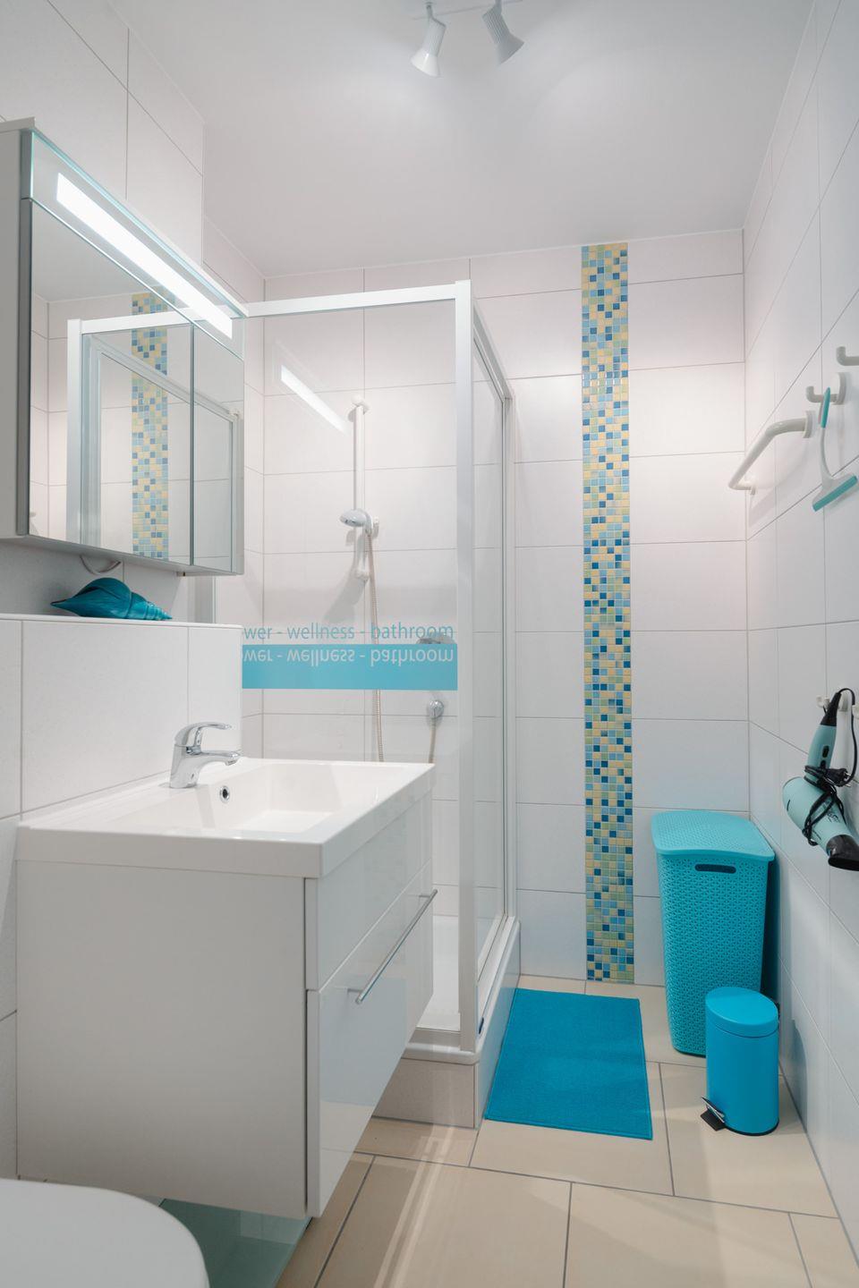 Das Badezimmer ist mit einer modernen Dusche und WC ausgestattet und sorgt für zusätzlichen Komfort während Ihres Aufenthalts.