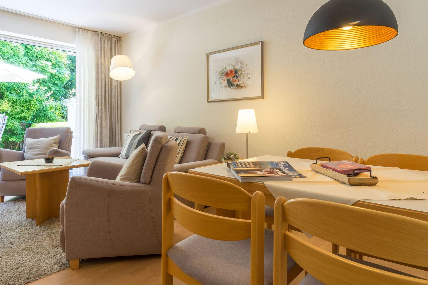 Ein besonderes Highlight ist die Süd-Terrasse, die zum Verweilen einlädt. Hier können Sie bei einem guten Buch entspannen oder den Tag bei einem Glas Wein ausklingen lassen. Der Standort im Parterre garantiert eine einfache Zugänglichkeit. Eine gemeinsame Waschmaschine und ein Trockner stehen gegen Gebühr ebenfalls zur Verfügung.