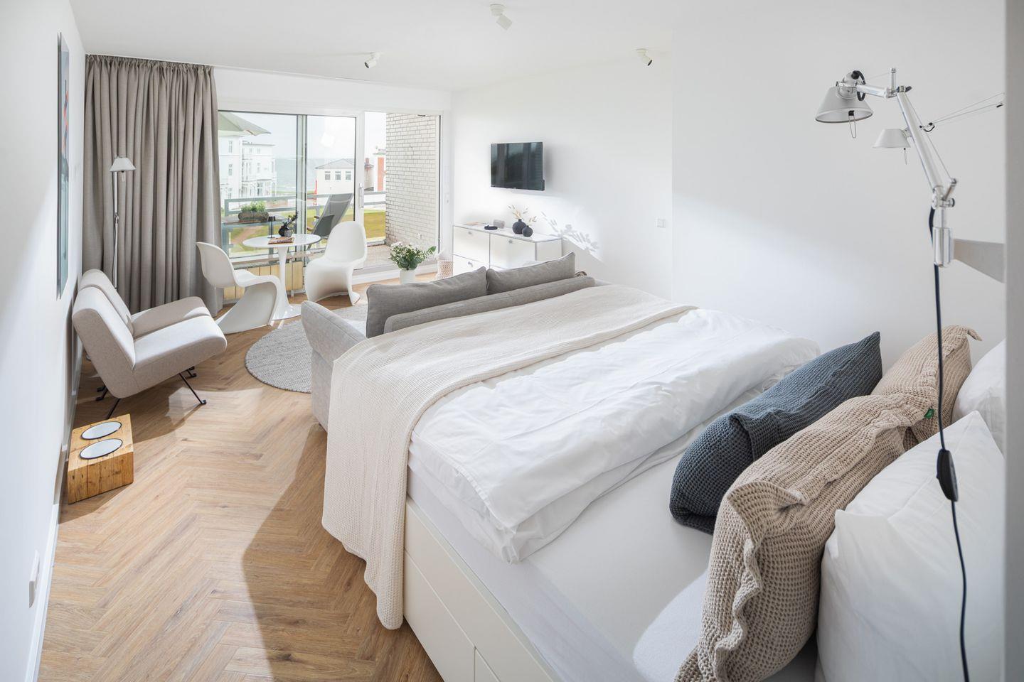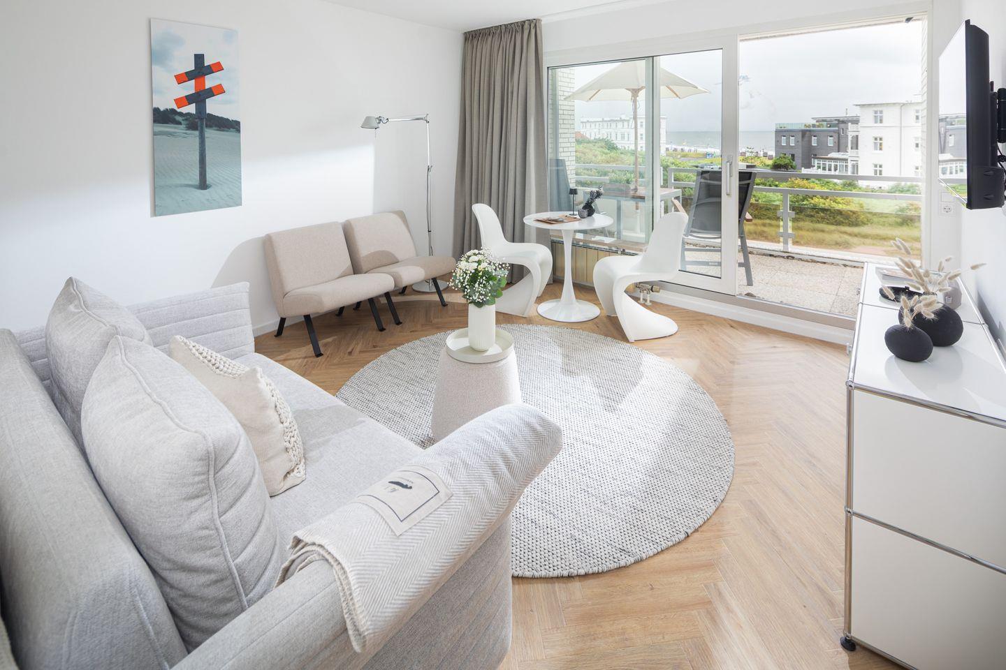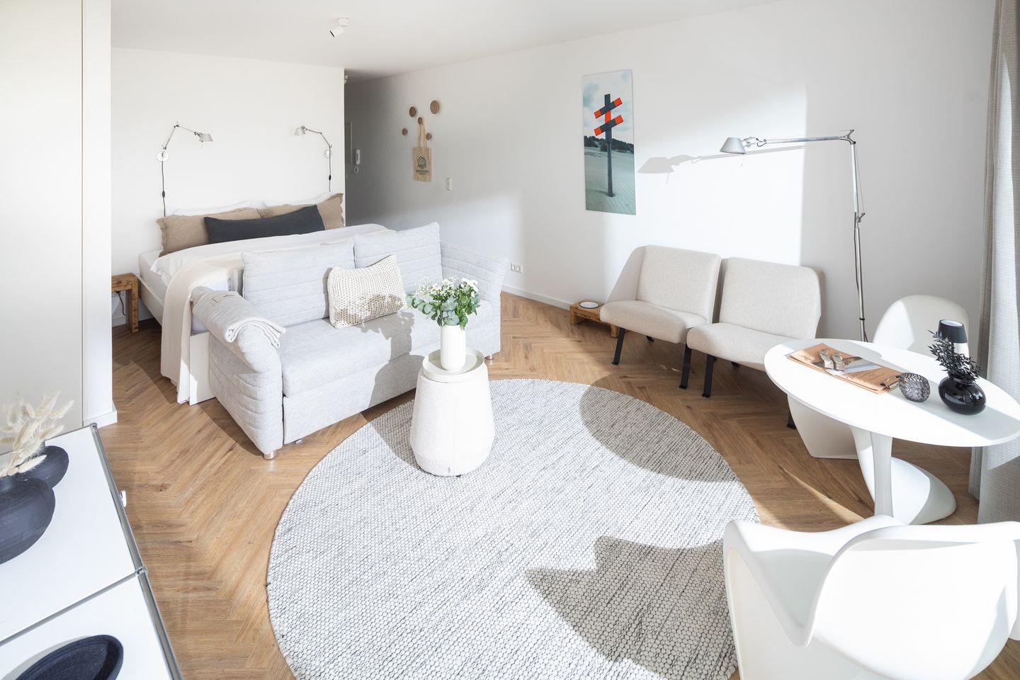 Willkommen in der stilvollen Ferienwohnung „NEY 12“ im Haus Fortuna – perfekt gelegen in der Viktoriastraße, nur wenige Schritte vom Weststrand entfernt. Die helle und modern eingerichtete Einraumwohnung mit traumhaftem Meerblick bietet alles für entspannte Urlaubstage zu zweit – und auch ein Hund ist herzlich willkommen.