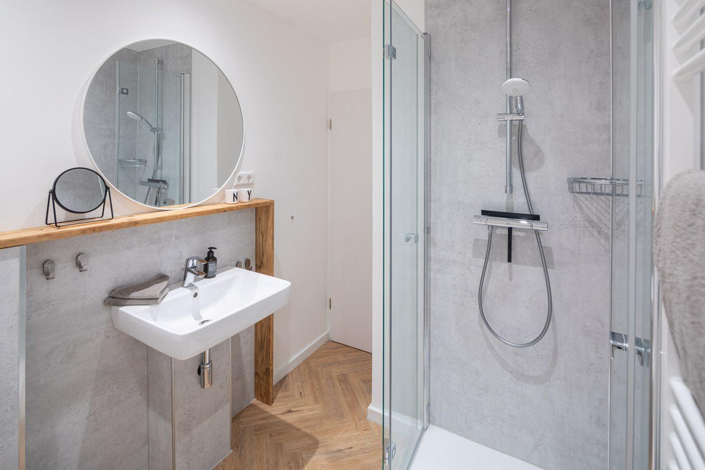 Die Ferienwohnung wurde im Jahr 2025 vollständig saniert! Freut euch auf stilvolles Design und durchdachte Ausstattung: Zwei original Panton-Stühle, ein elegantes USM Haller Sideboard, ein Smart-TV , sowie eine funktionale Küchenzeile mit hochwertigen Küchenutensilien, Kaffeemaschine, Nespresso-Maschine, Ceranfeld, Mini-Geschirrspüler und einer Mikrowelle mit Grillfunktion lassen keine Wünsche offen. Die begehbare Dusche im modernen Bad sorgt für zusätzlichen Komfort.