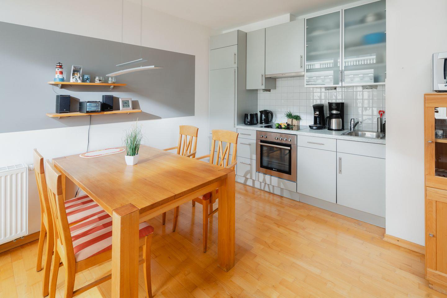 Die Wohnung 13, bequem erreichbar durch einen Aufzug, befindet sich im 3. Stock und wird von der Sonne verwöhnt. Hier können Sie die warmen Strahlen genießen und den Blick über die Insel schweifen lassen. Die gut ausgestattete Wohnung bietet Ihnen alles, was Sie für einen entspannten Urlaub benötigen.