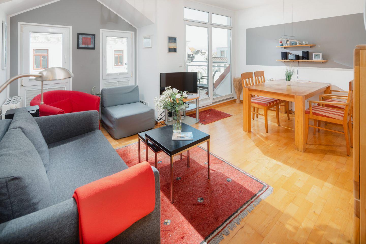 Ein besonderes Highlight sind die zwei Balkone der Wohnung. Ob beim Frühstück in der Morgensonne oder bei einem Glas Wein in den Abendstunden - hier können Sie die frische Seeluft und den Ausblick in vollen Zügen genießen.
