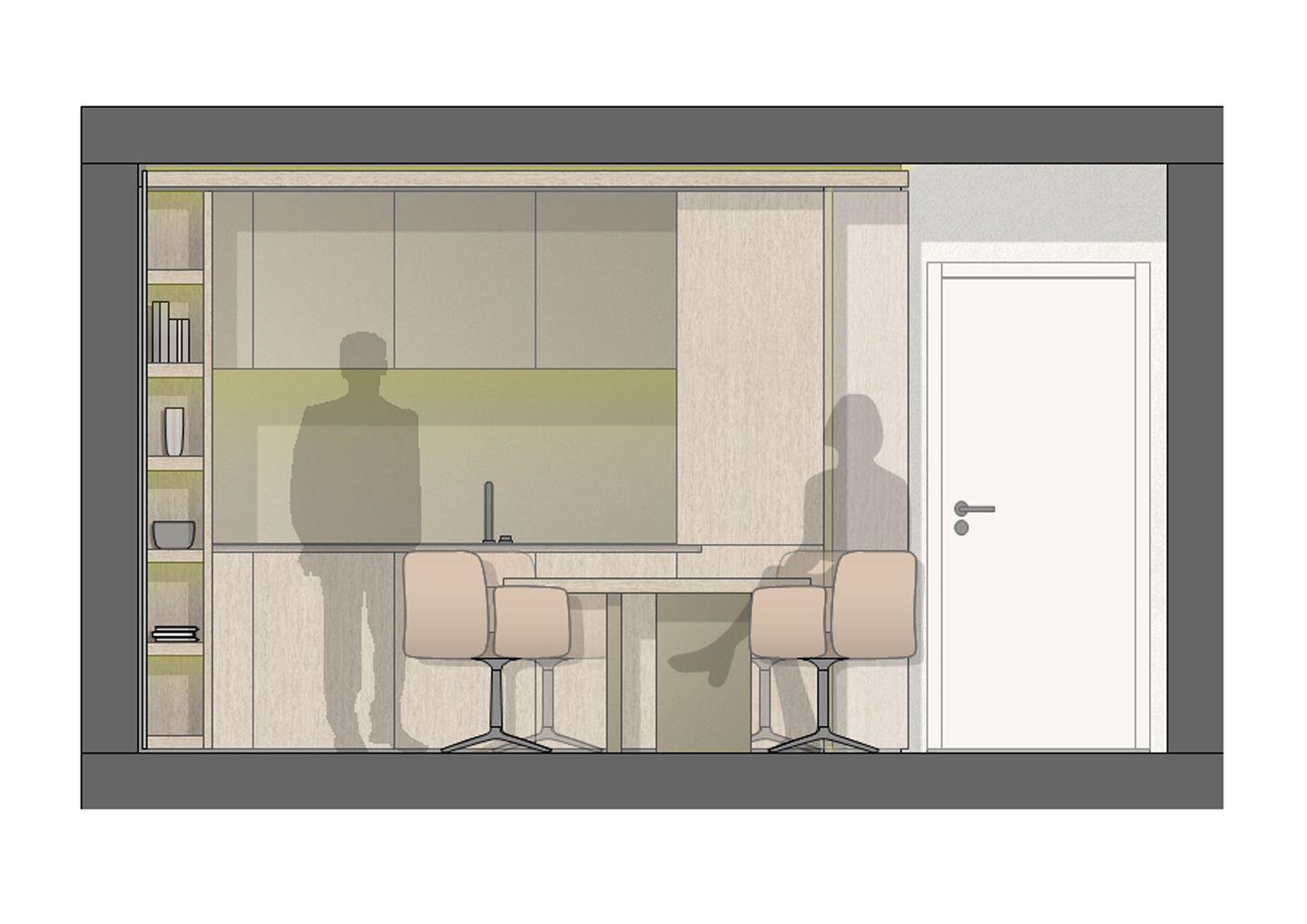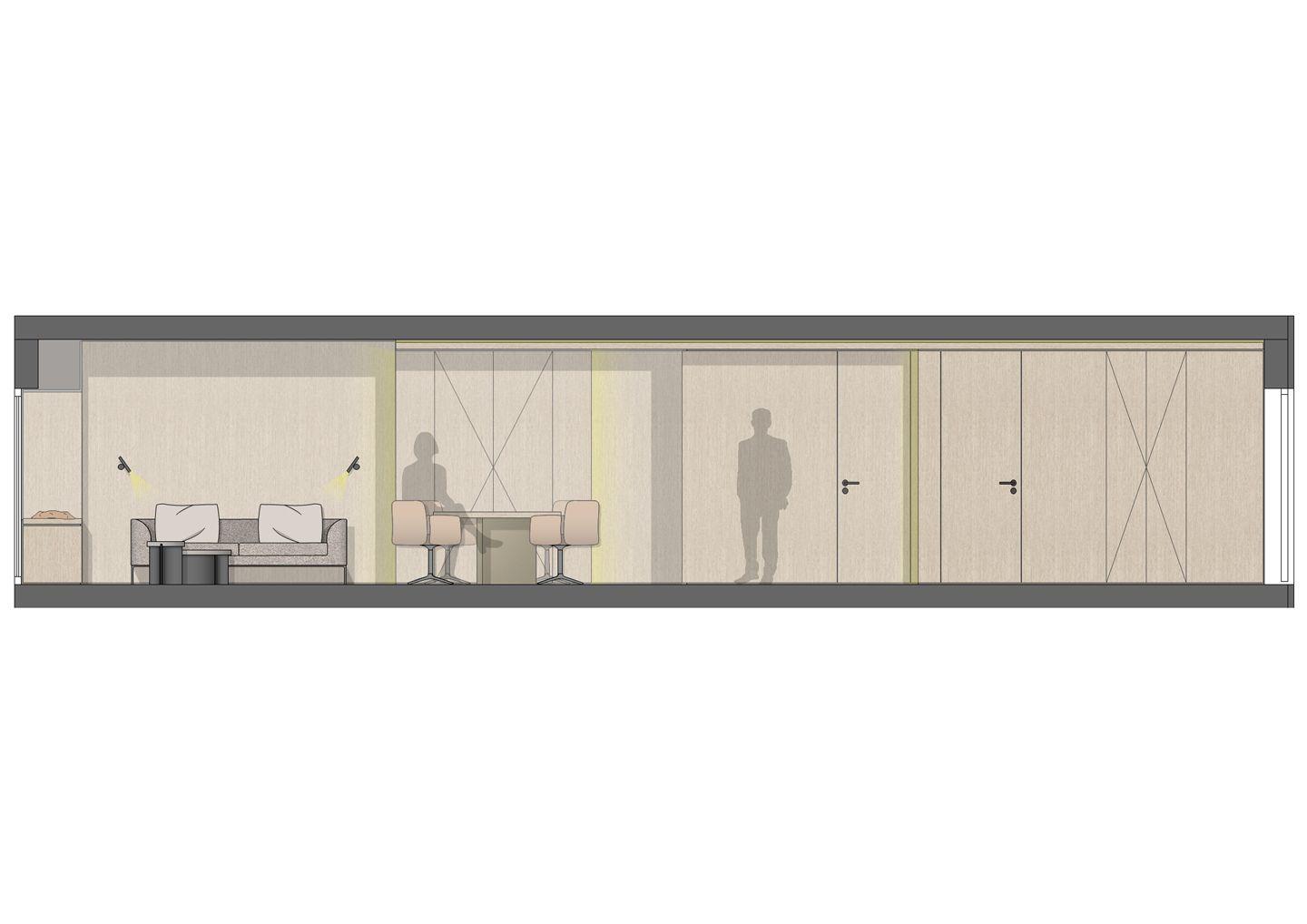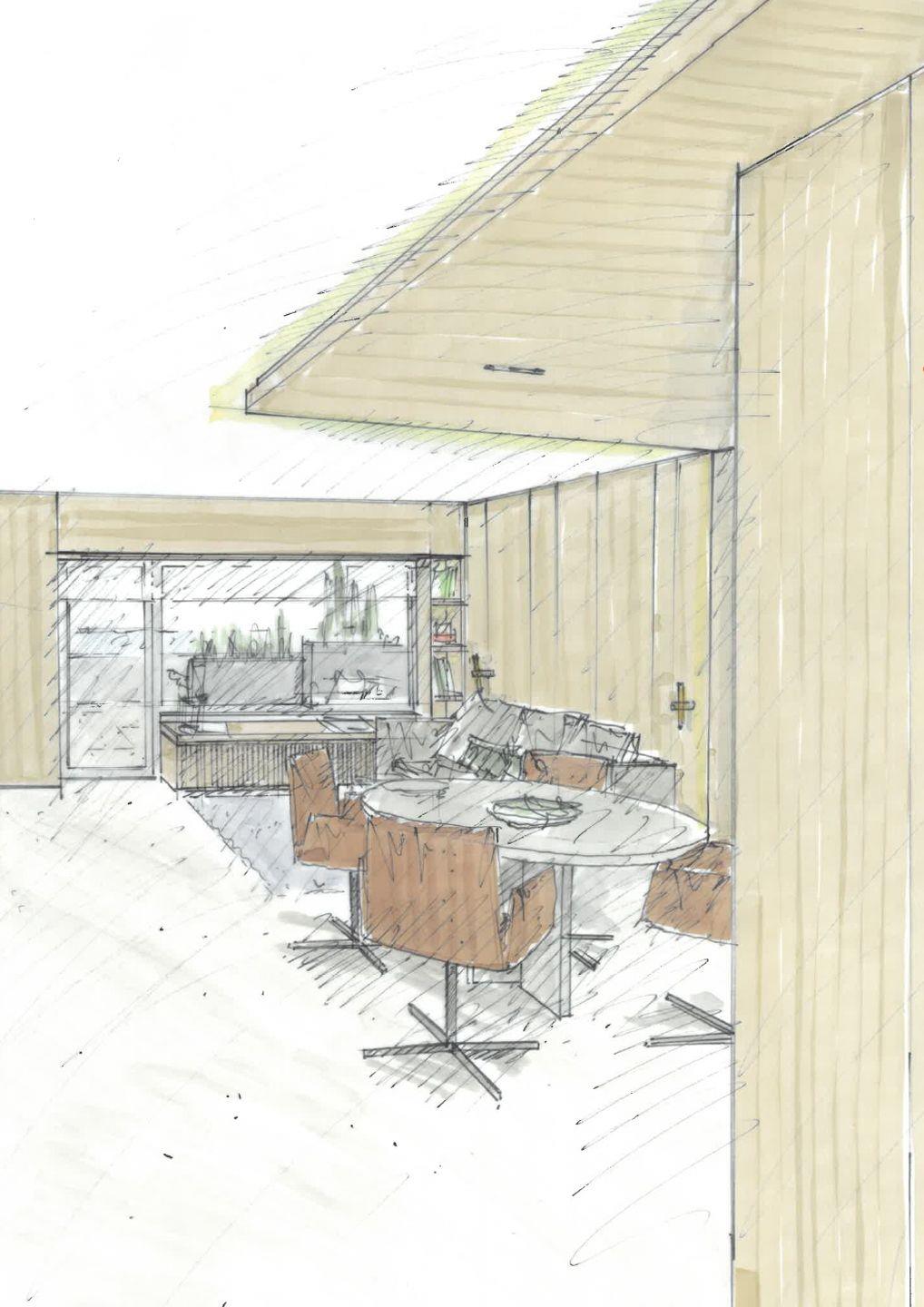 Im Inneren setzt die Wohnung auf klare Linien, hochwertige Materialien und eine moderne, zurückhaltende Gestaltung. Wände und abgehängte Decke sind in ausgewählten Bereichen mit Fichte natur verkleidet – für eine warm-ruhige Atmosphäre und ein stimmiges Gesamtbild. Alle Möbel entstehen als maßgefertigte Einbaumöbel aus der Tischlerei: flächenbündig, stauraumstark und visuell reduziert. Alles ist auf entspannte Aufenthalte ausgelegt – ein privater Rückzugsort über der City.