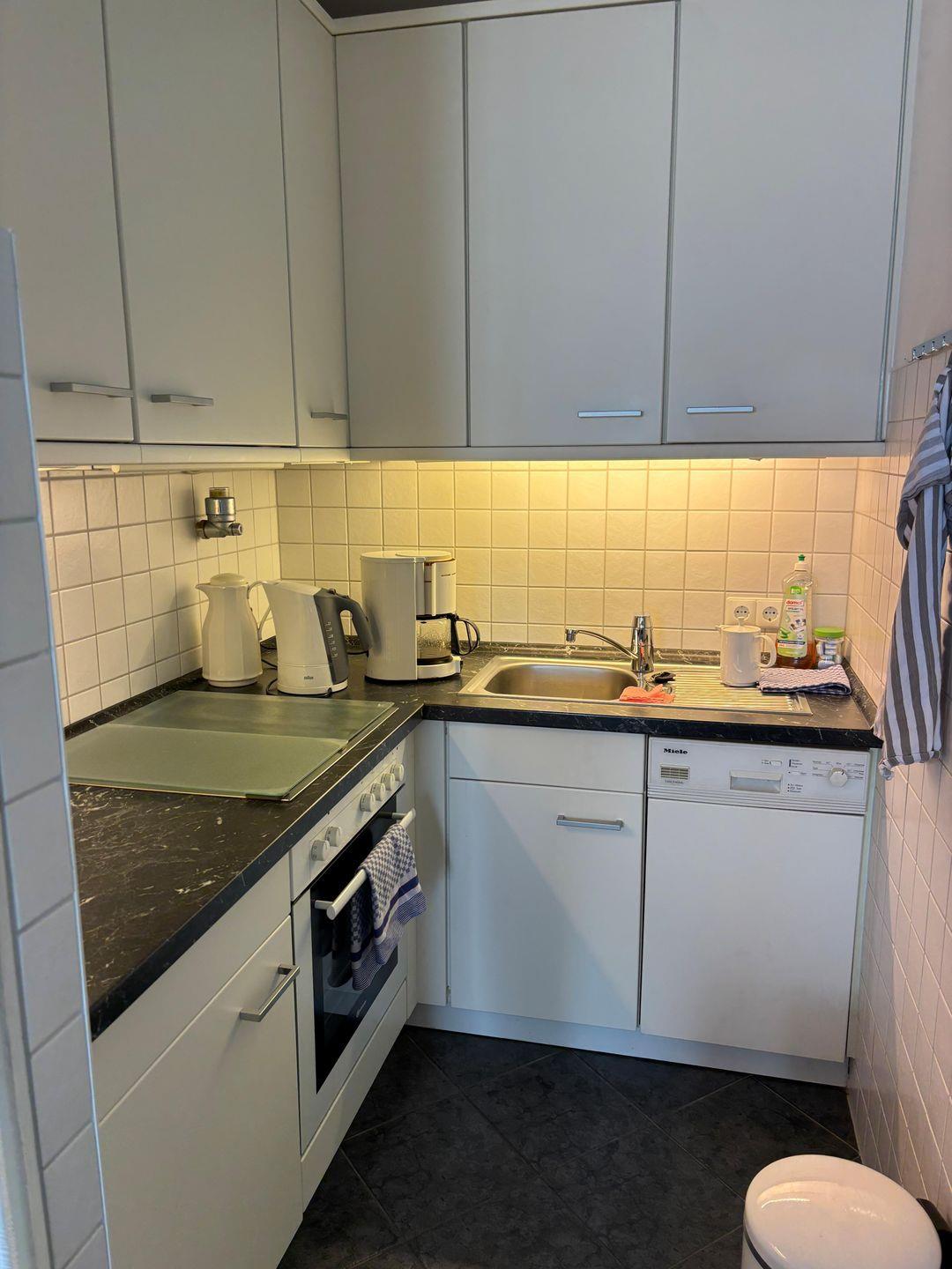 Die Wohnung bietet 3 Zimmer, ein Elternschlafzimmer mit Doppelbett und ein Kinderzimmer mit Etagenbett. Im Wohn- Eßbereich befinden sich 2 bequeme Sessel und eine Couch, ebenso eine Essecke mit Tisch und Stühlen. Die angrenzend offene Küche bietet alles was man benötigt. Das Badezimmer ist mit Dusche/WC ausgestattet. Internet per WLAN steht Ihnen für Ihren Aufenthalt kostenlos zur Verfügung. Waschmaschine und Trockner können Sie kostenpflichtig im Haus nebenan im EG nutzen.