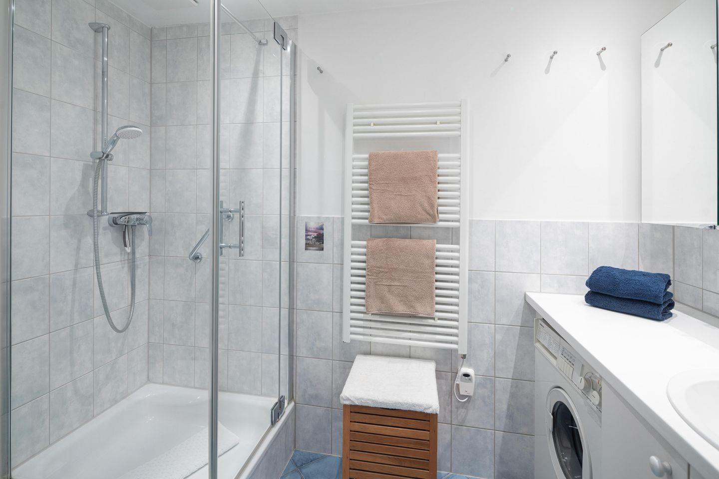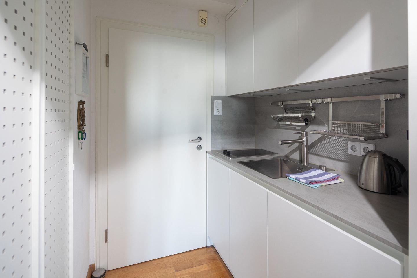 Die Wohnung wurde kürzlich komplett modernisiert und hochwertig möbliert. Sie verfügt über ein Wohn- und Schlafzimmer, das mit einer komfortablen Ausziehcouch ausgestattet ist. Die Couch bietet mit einer Breite von 1,40 Metern genügend Platz für entspannte Abende oder eine erholsame Nacht. Ein 20 Quadratmeter großer Balkon zur Hofseite bietet ausreichend Platz für ein Frühstück in der Sonne.