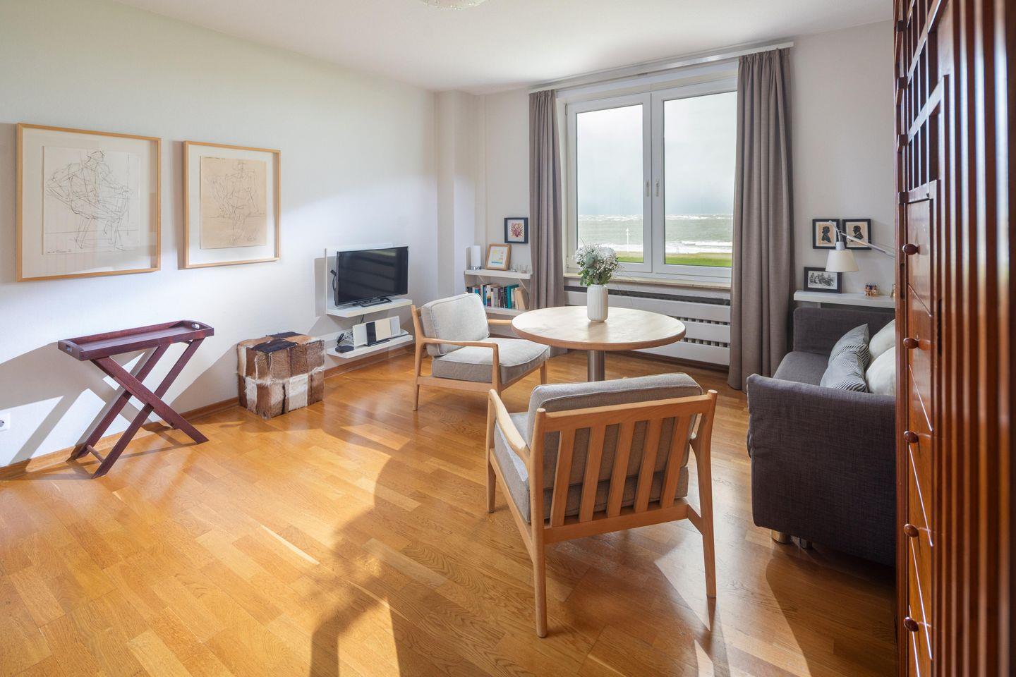 Das Apartment im ersten Stock (erreichbar per Aufzug) besticht durch seinen direkten Blick auf die unendliche Weite der Nordsee. Lassen Sie sich von dem atemberaubenden Panorama verzaubern und genießen Sie die Ruhe und Gelassenheit, die das Meer ausstrahlt.