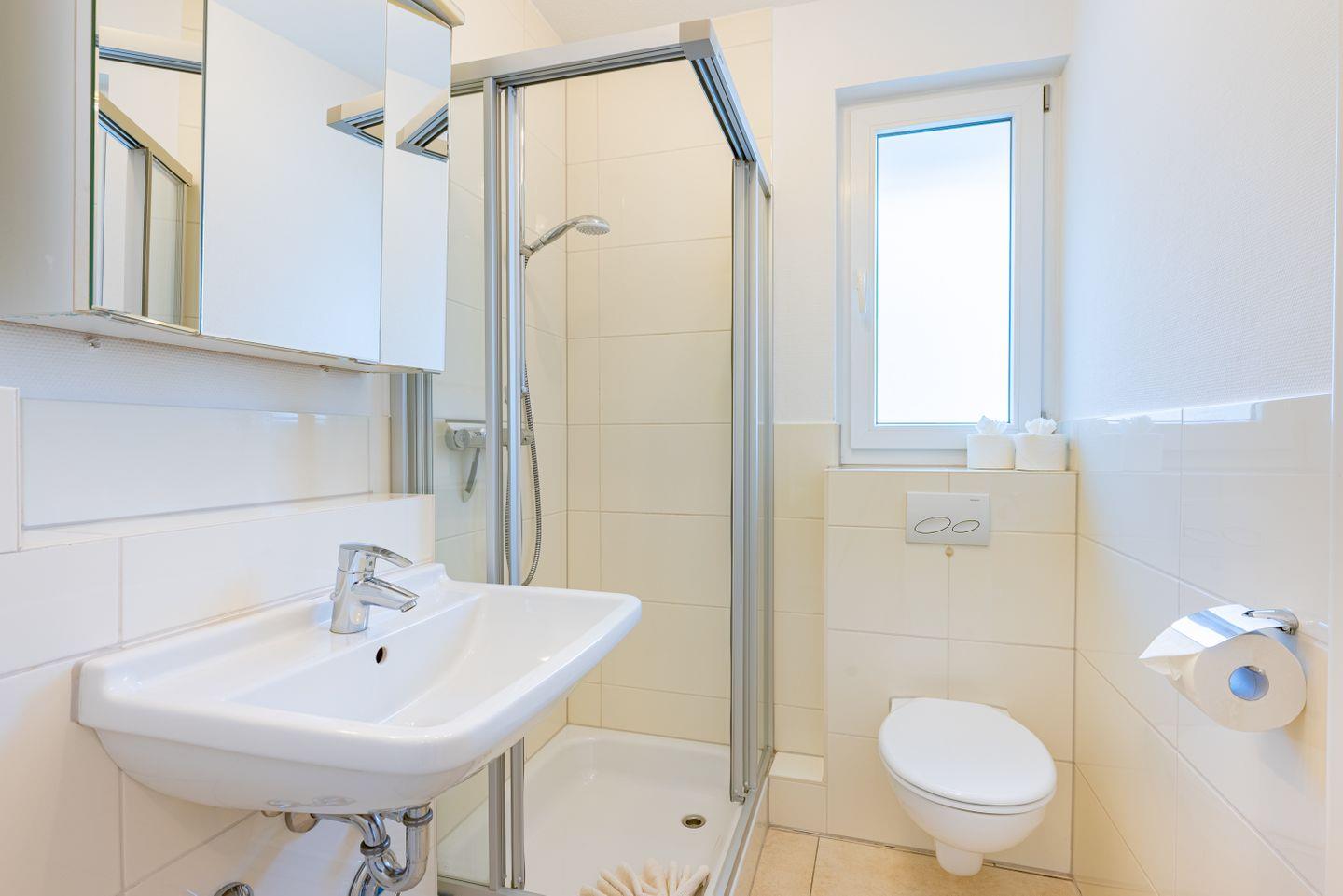 Der Balkon lädt nach einem langen Strandtag zum Luftschnappen ein. Wer mit dem Rad unterwegs ist, findet einen überdachten Fahrradstellplatz auf dem Grundstück. Waschmaschine und Trockner machen auch längere Aufenthalte praktisch. Zwei Fernseher, einer im Wohn- und einer im Schlafbereich, sorgen für Unterhaltung, wenn draußen der Wind pfeift.