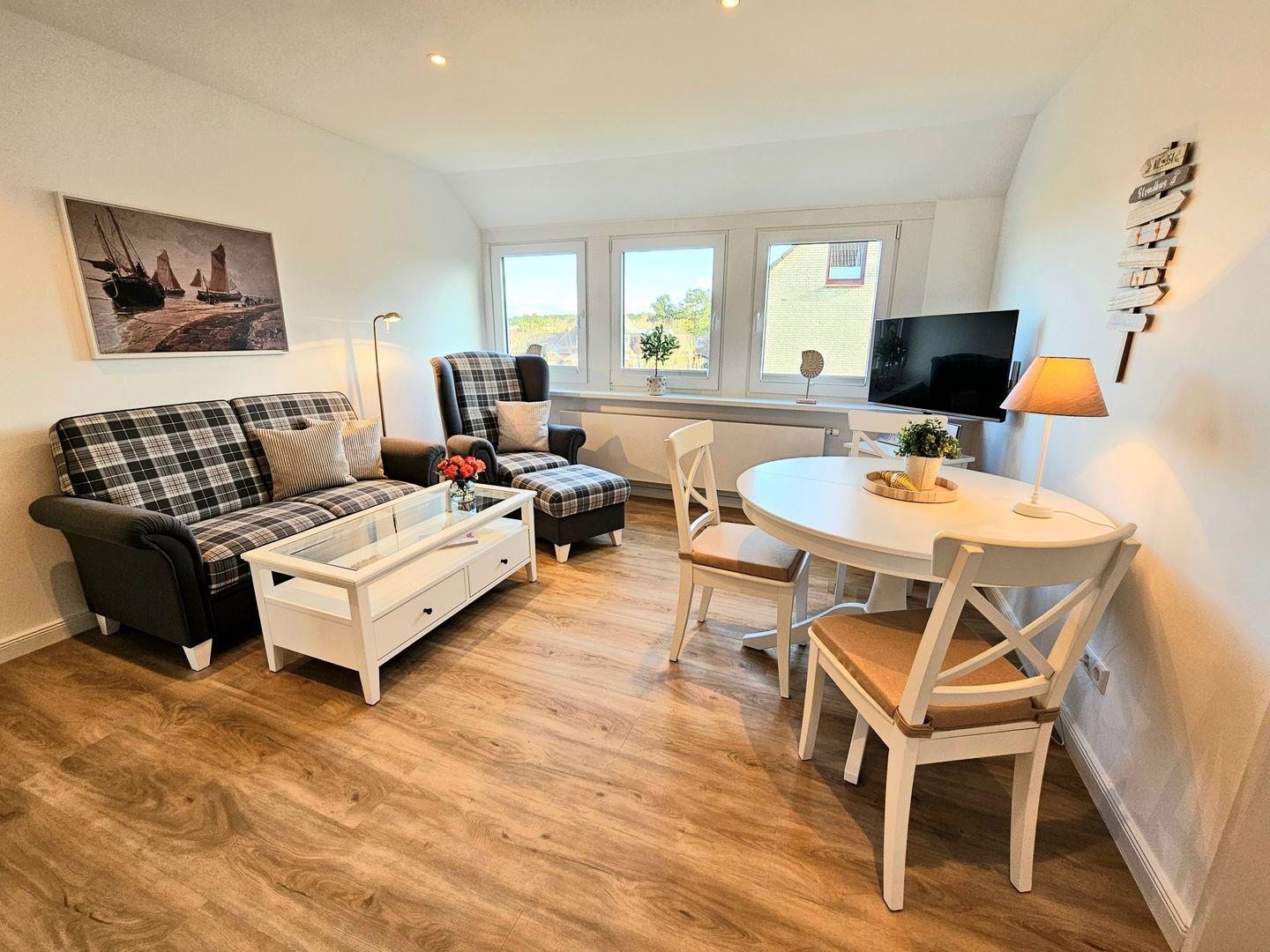 Die modern und frisch renovierte (März 2026) ausgestattete Ferienwohnung Süderstuuv liegt im 1. Stock und bietet auf 40 m² Platz für bis zu zwei Gäste. Sie verfügt über ein Schlafzimmer, einen offenen Wohn- und Essbereich sowie eine komplett eingerichtete Küche. WLAN, Kabel-TV, Bettwäsche und Handtücher sind inklusive. Der Sandstrand ist nur 250 m entfernt, Einkaufsmöglichkeiten befinden sich in ca. 400 m Entfernung. Haustiere sind nach Absprache willkommen.