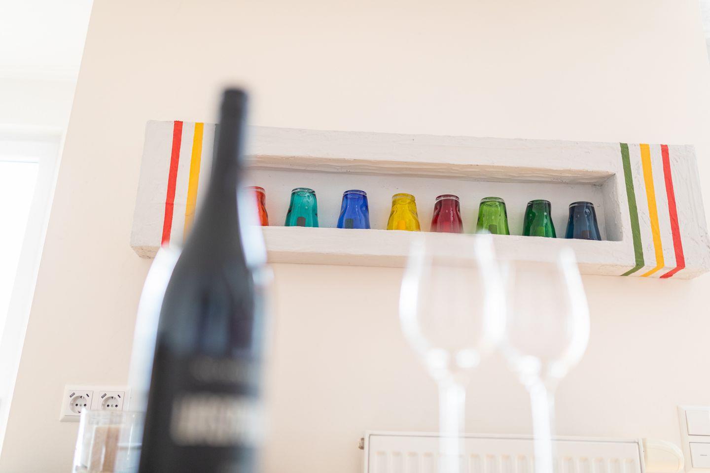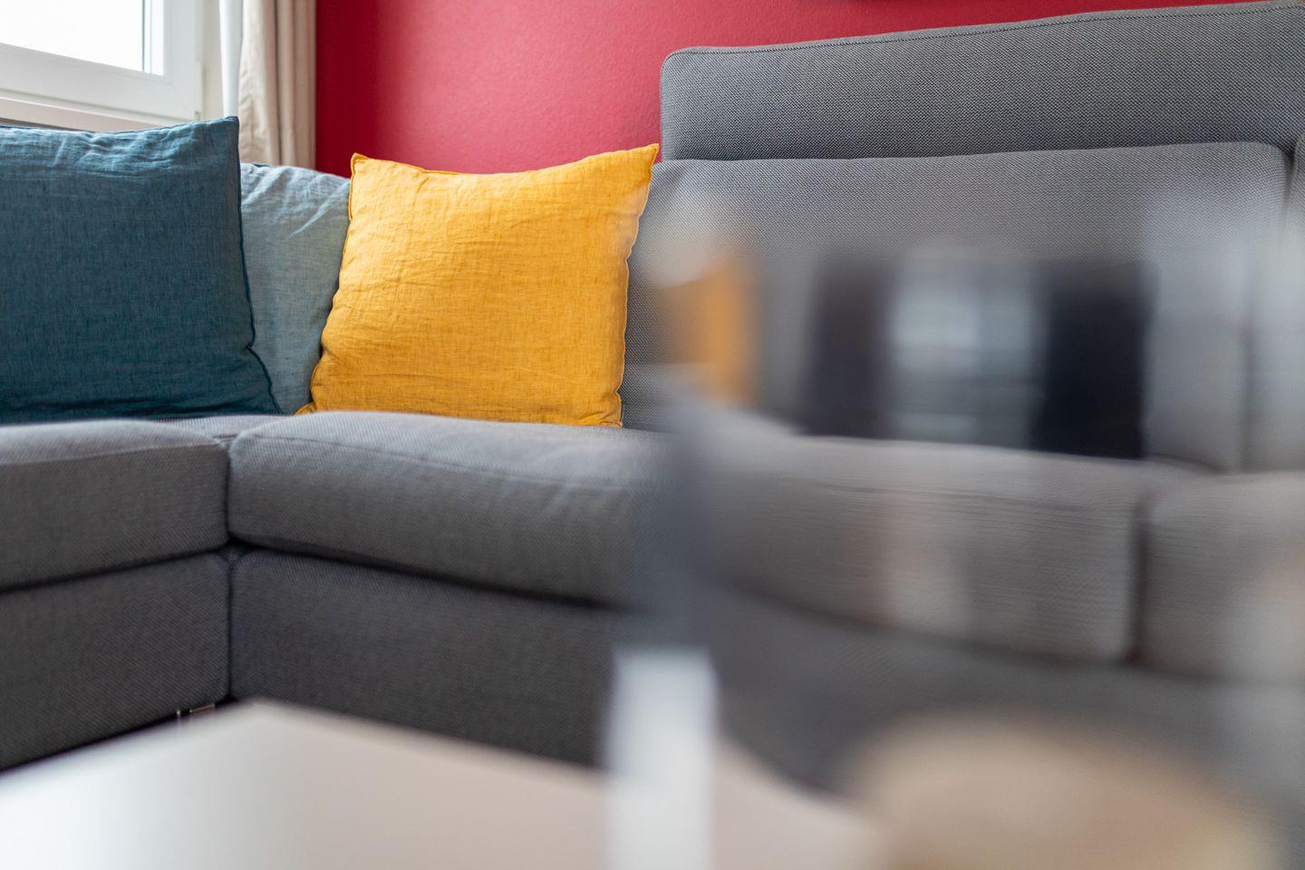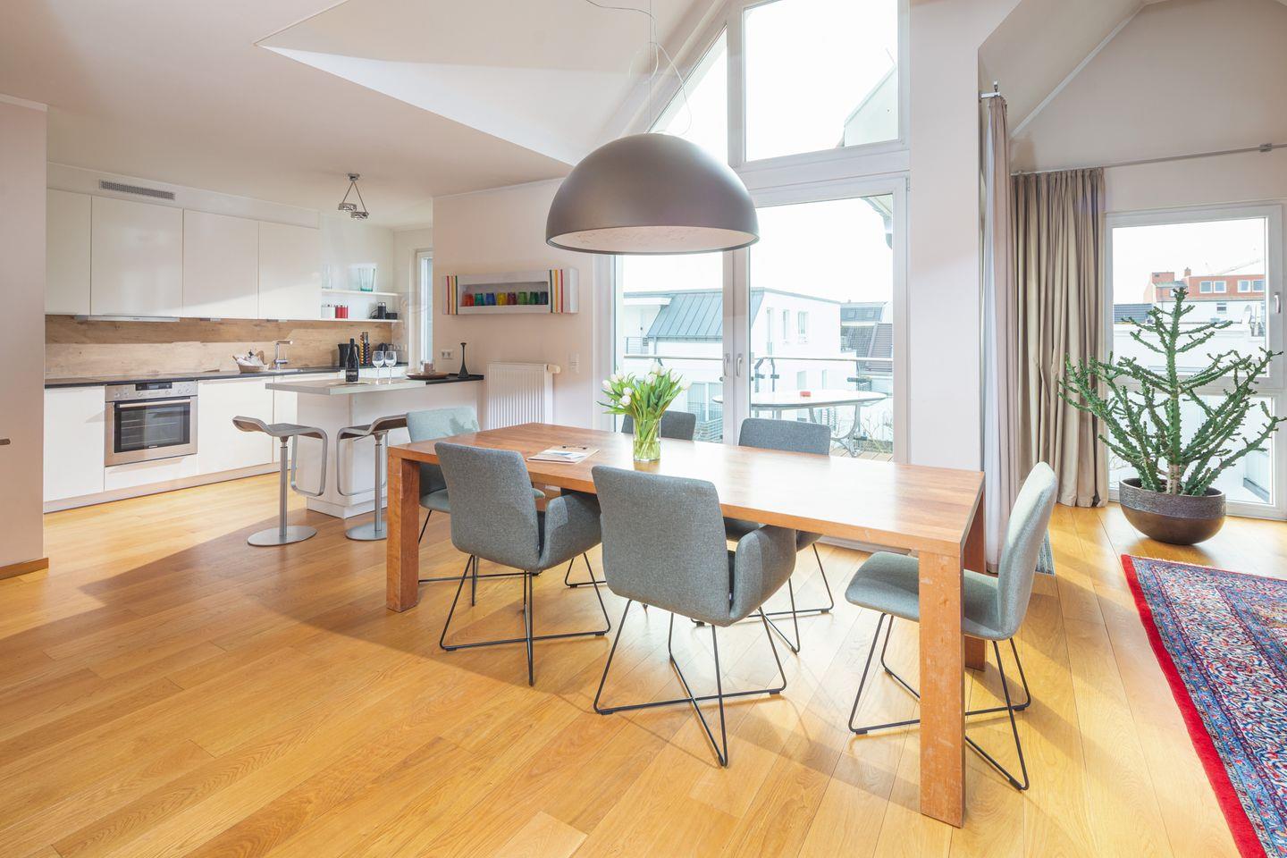 Der offen gestaltete Wohn- und Essbereich ist großzügig geschnitten und bietet viel Platz für gemeinsame Stunden. Die Küche ist offen zum Wohnzimmer integriert und vollständig ausgestattet. Ceran-Herd, Backofen, Kühlschrank mit Gefrierfach, Spülmaschine sowie Toaster und Wasserkocher gehören zur Ausstattung. Eine Nespresso-Espressomaschine sorgt für den perfekten Start in den Tag. Hochwertiges Geschirr, Besteck und umfangreiche Küchenutensilien sind selbstverständlich vorhanden, sodass es auch bei längeren Aufenthalten an nichts fehlt. Am Esstisch finden alle Gäste bequem Platz, während das Sofa zu entspannten Abenden einlädt. Im Wohnzimmer befindet sich ein großer Smart-TV. WLAN steht in der gesamten Wohnung kostenfrei zur Verfügung.