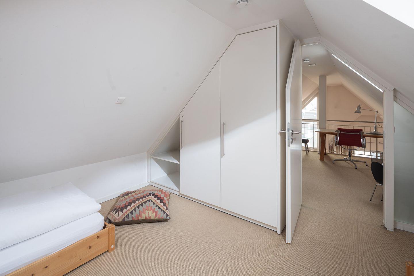 Die Ferienwohnung verfügt über zwei großzügige Doppel-Schlafzimmer sowie ein Kinderzimmer mit zwei getrennten Betten. Insgesamt stehen sechs Schlafmöglichkeiten zur Verfügung. Die direkte Anbindung der Dachterrasse an die Schlafzimmer unterstreicht das offene und komfortable Wohnkonzept.