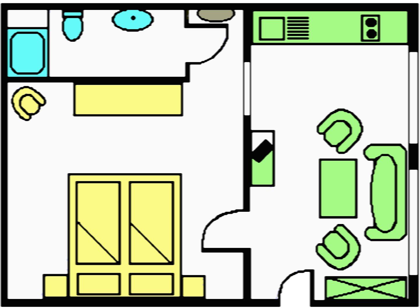 Der Wohnbereich verfügt über Teppichboden und ist mit Sessel, Garderobe und Kommode praktisch ausgestattet. Für Unterhaltung sorgen ein TV (25–34 Zoll) mit Kabelanschluss sowie ein Radio. Internet und WLAN stehen Ihnen ebenfalls zur Verfügung. Sichtschutz an allen Fenstern trägt zu Privatsphäre und angenehmem Wohnkomfort bei, während Zentralheizung und Rauchmelder für Sicherheit und ein gutes Raumklima sorgen; Staubsauger ist vorhanden.