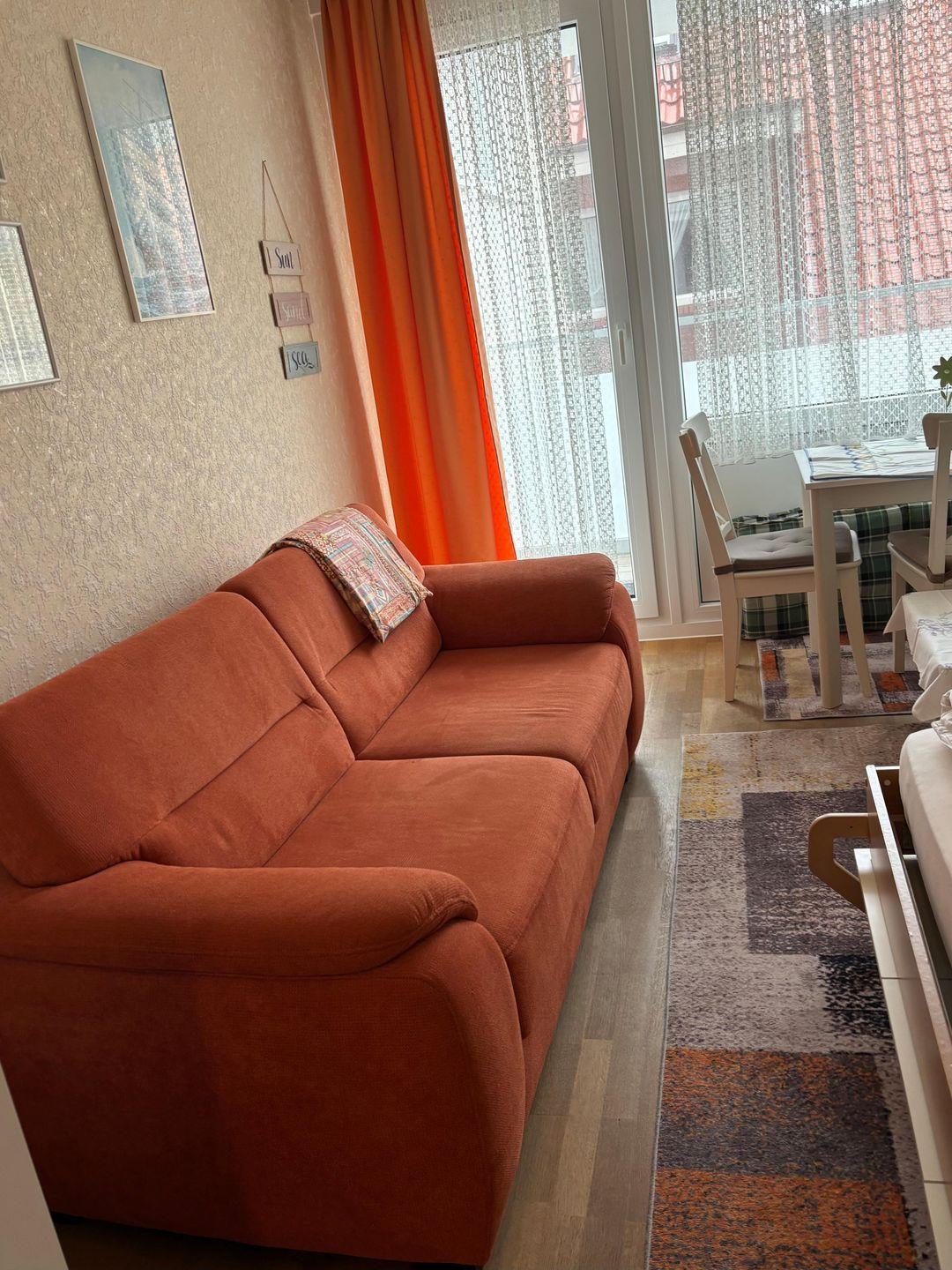 Sie hat eine Balkon. Die Wohnung ist ausgestattet mit Schrankbetten. Ebenso verfügt die Wohnung über eine kleine Küche mit 4-Platten-Herd und Kühlschrank. Dusche und WC ist auch vorhanden. Die Wohnung besitzt WLAN.