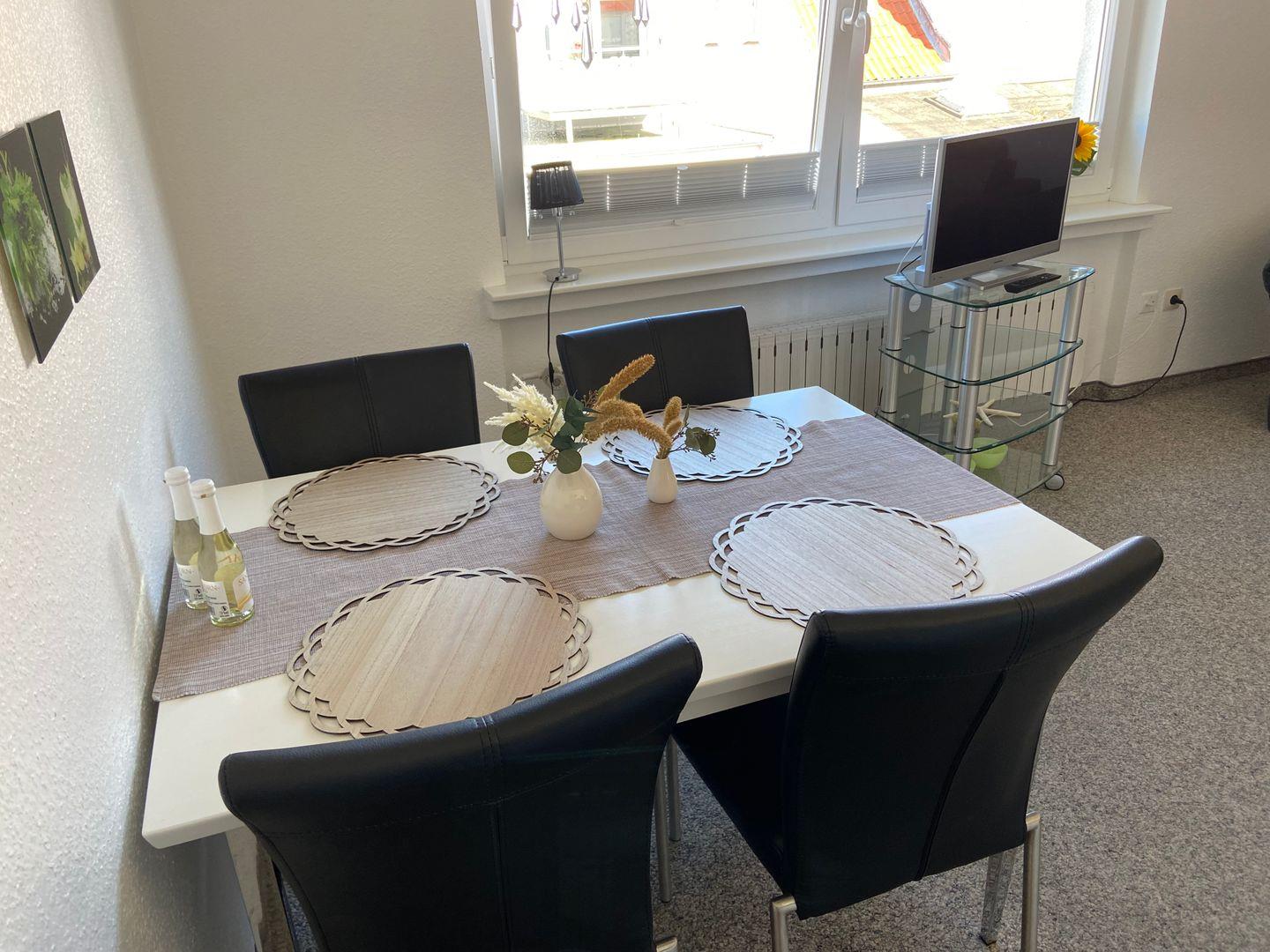 separates Schlafzimmer mit Doppelbett und zusätzlicher Sitzgelegenheit, Wohn-Schlafraum (Schlafsofa 1,60 x 2m) mit voll ausgestatteter Küchenzeile und Essecke. Badezimmer mit Dusche/WC. Hinter dem Haus befindet sich eine Gemeinschaftsterrasse, die Sie gerne nutzen können. Im Haus Kleeblatt befinden sich 3 weitere Ferienwohnungen. Bäcker, Lebensmittelgeschäfte und die Strandpromenade sind die Straße rauf oder runter fußläufig zu erreichen.