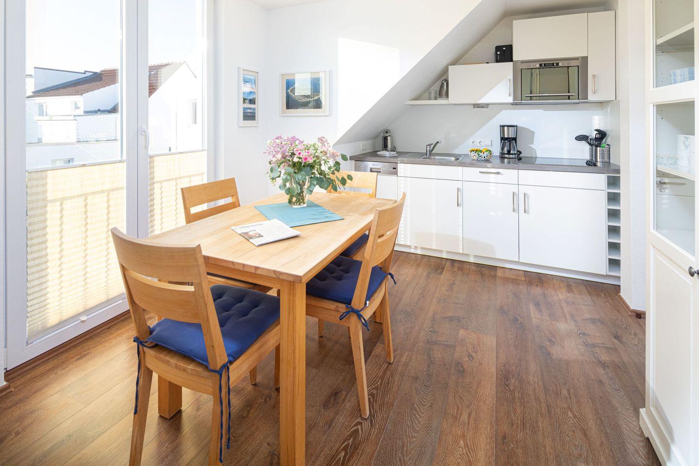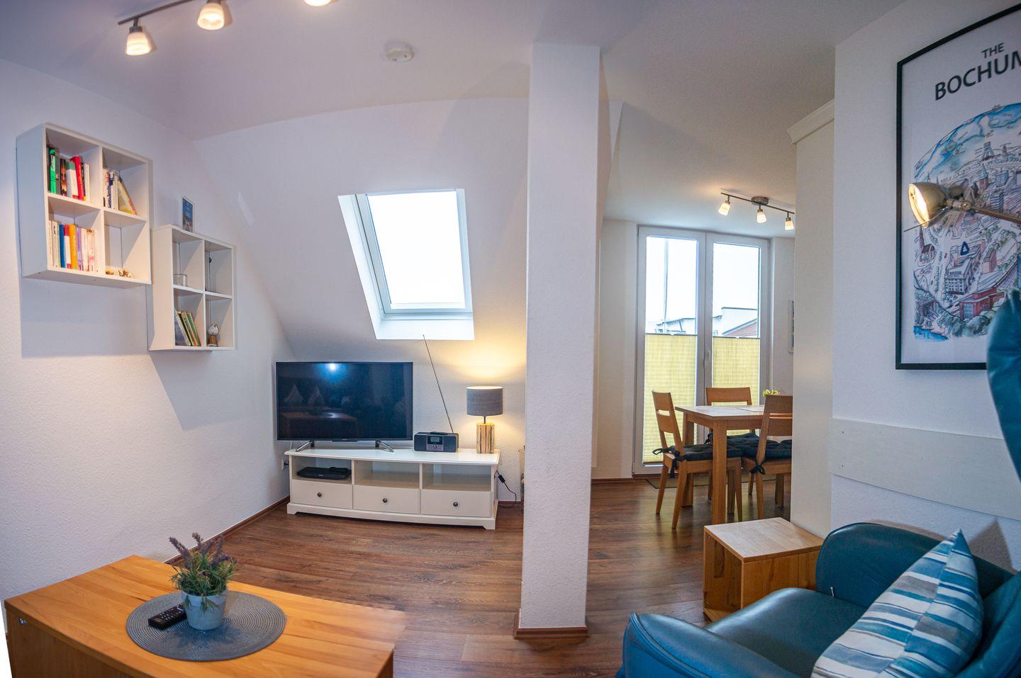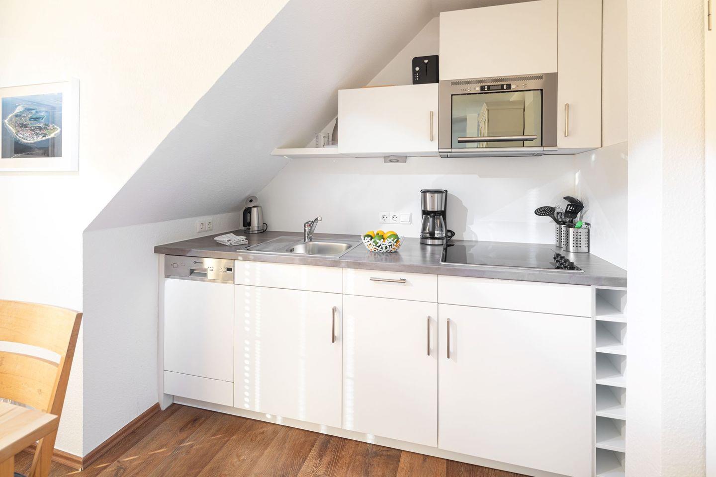 die Neybo liegt in einem kleinen 2-Parteien-Häuschen im OG. Über die Diele erreichen Sie das separate Schlafzimmer mit Doppelbett, das Tageslichtbad mit Dusche/WC und das verwinkelte Wohnzimmer mit gemütlicher Sofaecke. Die Essecke befindet sich vor dem Fenster und der voll ausgestatteten Küchenzeile. Der Strandaufgang zum Surfcafé und Riffkieker ist nur einen Steinwurf entfernt.