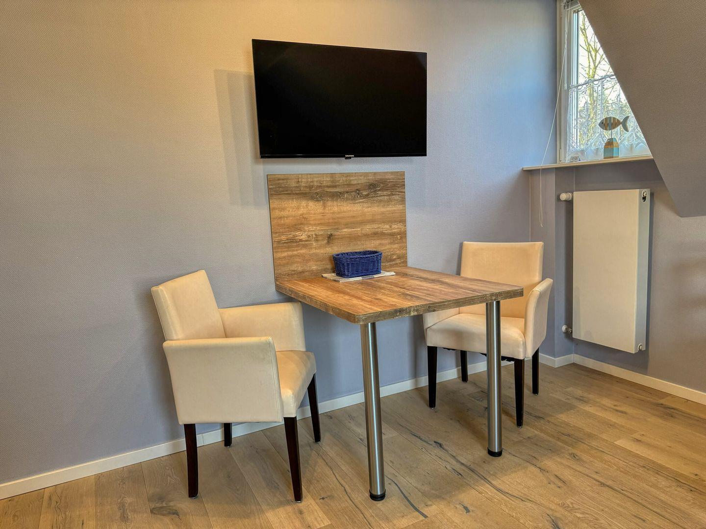 die Wohnung im 1. OG verfügt über ein separates Schlafzimmer mit Doppelbett, Diele, Wohn-Schlafraum (Schlafsofa 1,60m breit) mit Küchenzeile und Essecke sowie über ein Tageslichtbad mit Dusche/WC. Der wohnungseigene Parkplatz ist in Hausnähe im Kiefernweg. Im Haus befinden sich 2 Ferienwohnungen, Lebensmittelgeschäfte mit Bäcker in 350m Entfernung.