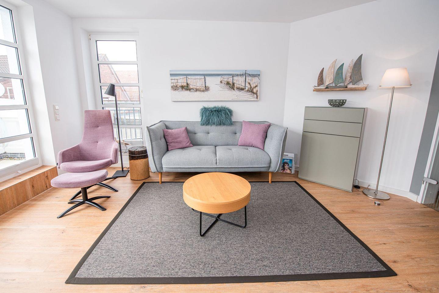 Sessel und ein gemütliches Sofa im Wohnbereich geben eine angenehme Atmosphäre der Entspannung her.
