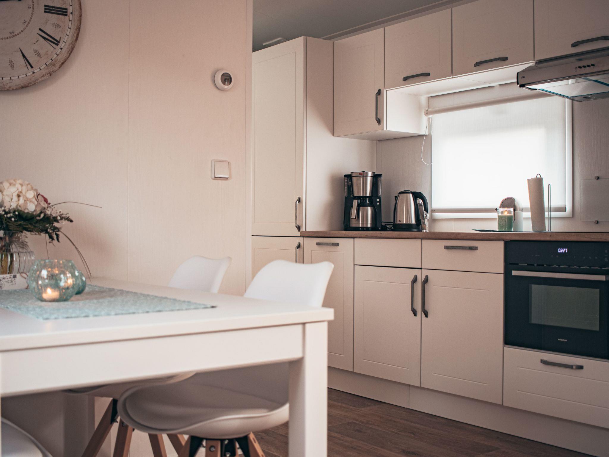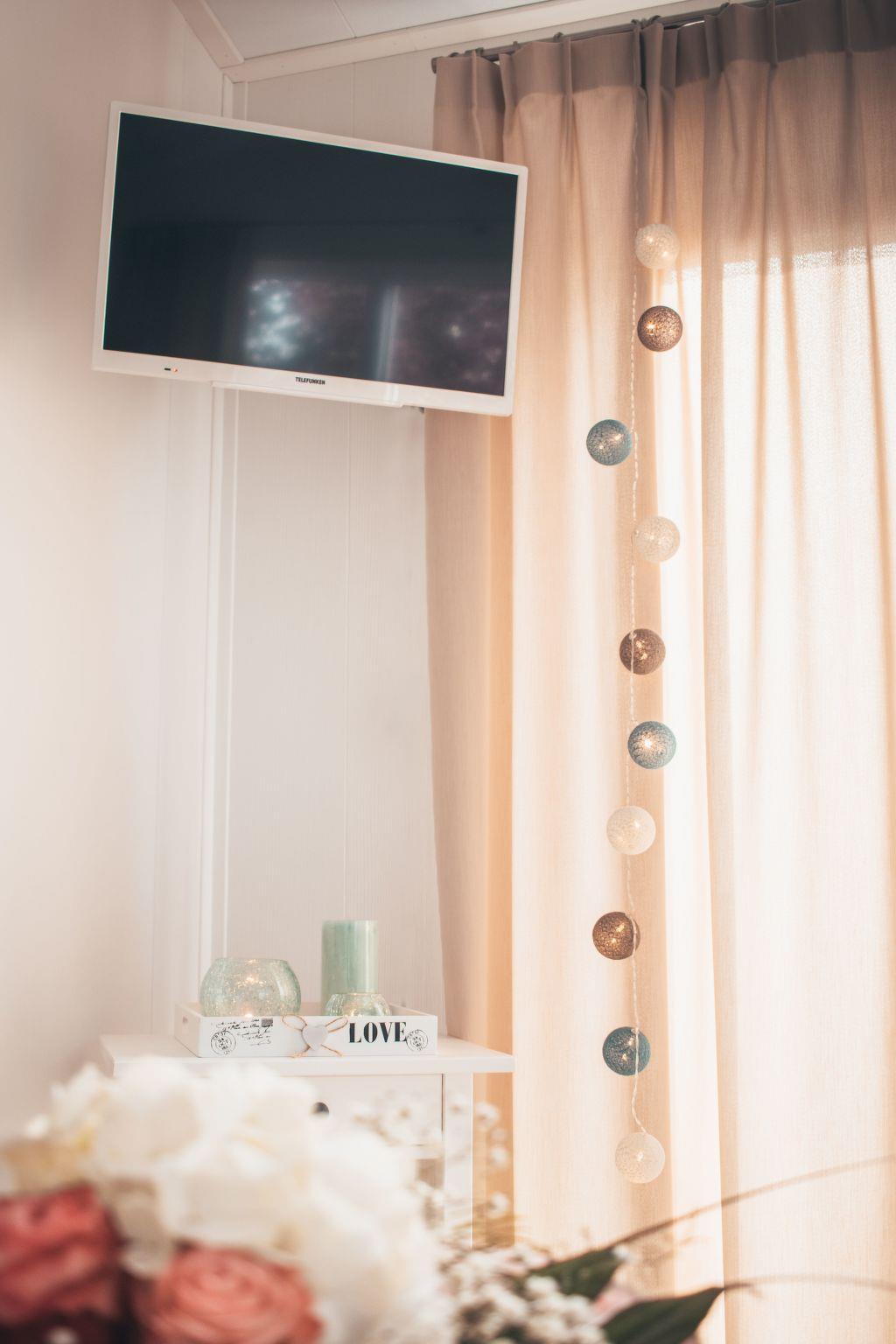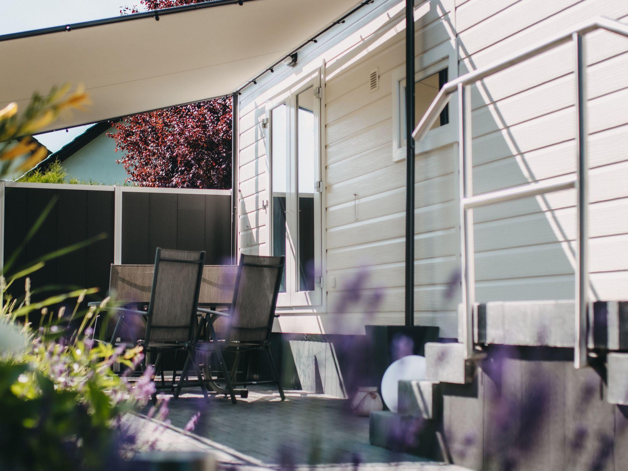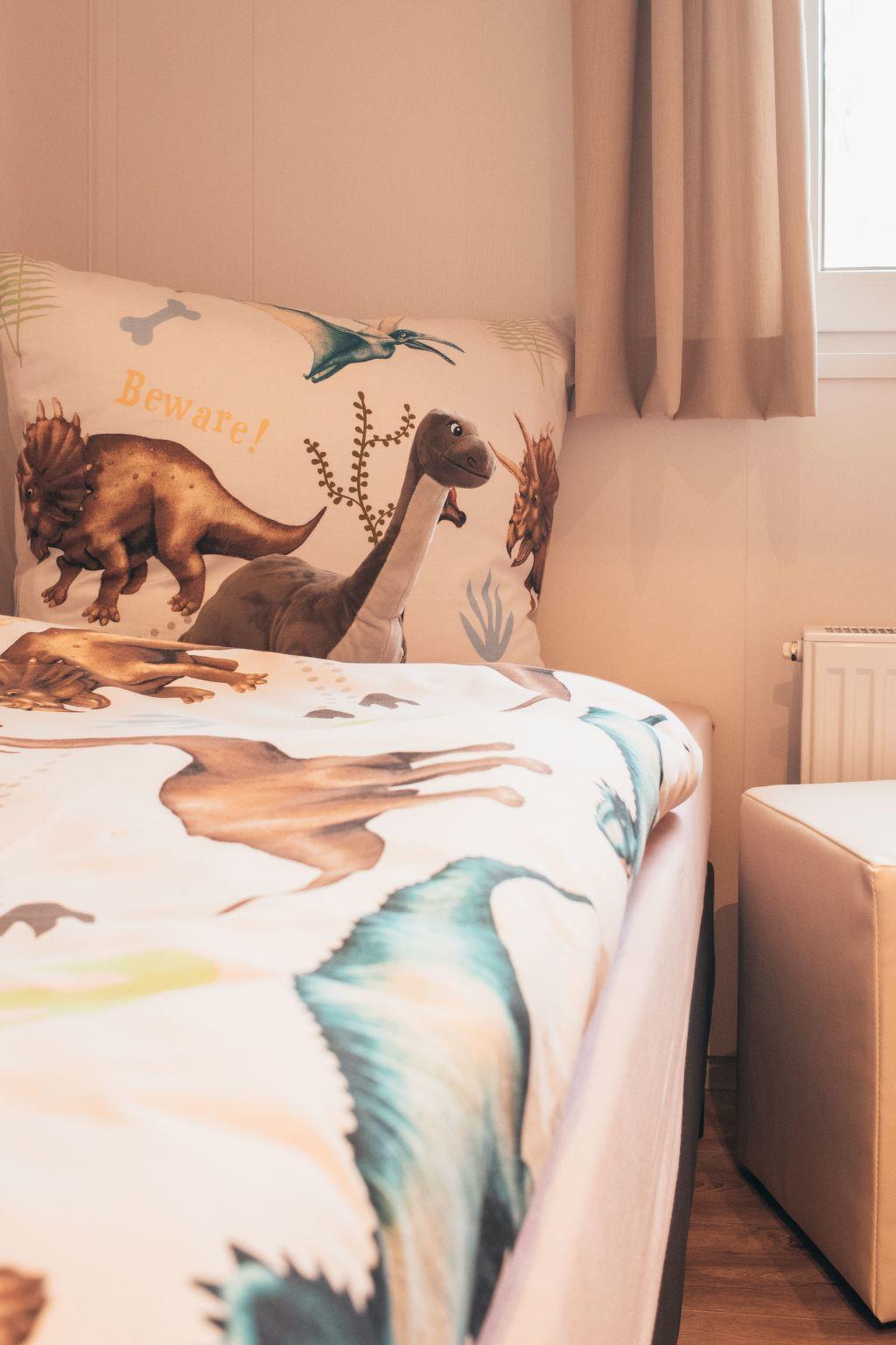 A modern and bright atmosphere awaits you inside the house, which was completed in September 2020. The 40 m² living space is divided into a bathroom with a large walk-in shower, WC, an open-plan living and dining area with a fully equipped kitchen that leaves nothing to be desired. The sleeping arrangements include a master bedroom with double bed and sliding-door wardrobe and a children's room with two single beds. A satellite TV with internet access provides entertainment, while the spacious corner sofa with sleeping function offers additional comfort.