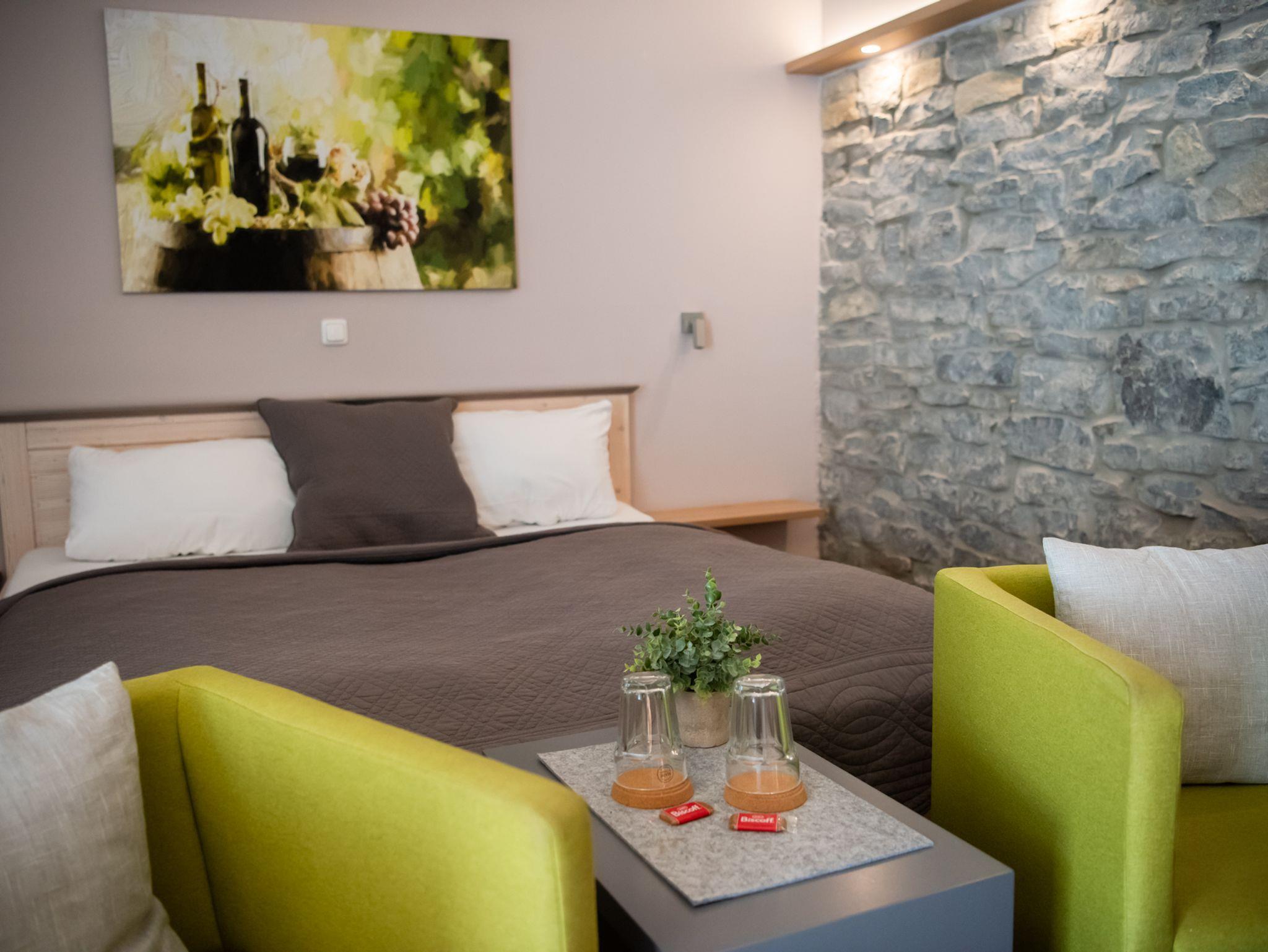 Etwas großzügiger sind unsere 4 Premium Doppelzimmer mit einem Doppelbett, einer Sitzecke und teilweise mit freigelegter Steinwand. Jedes Premium Doppelzimmer hat ein geräumiges Bad mit Dusche und einen angrenzenden Balkonbereich (Veranda) mit 2 Stühlen und einem kleinen Tisch. Alle 4 Zimmer befinden sich in der 1. Etage.