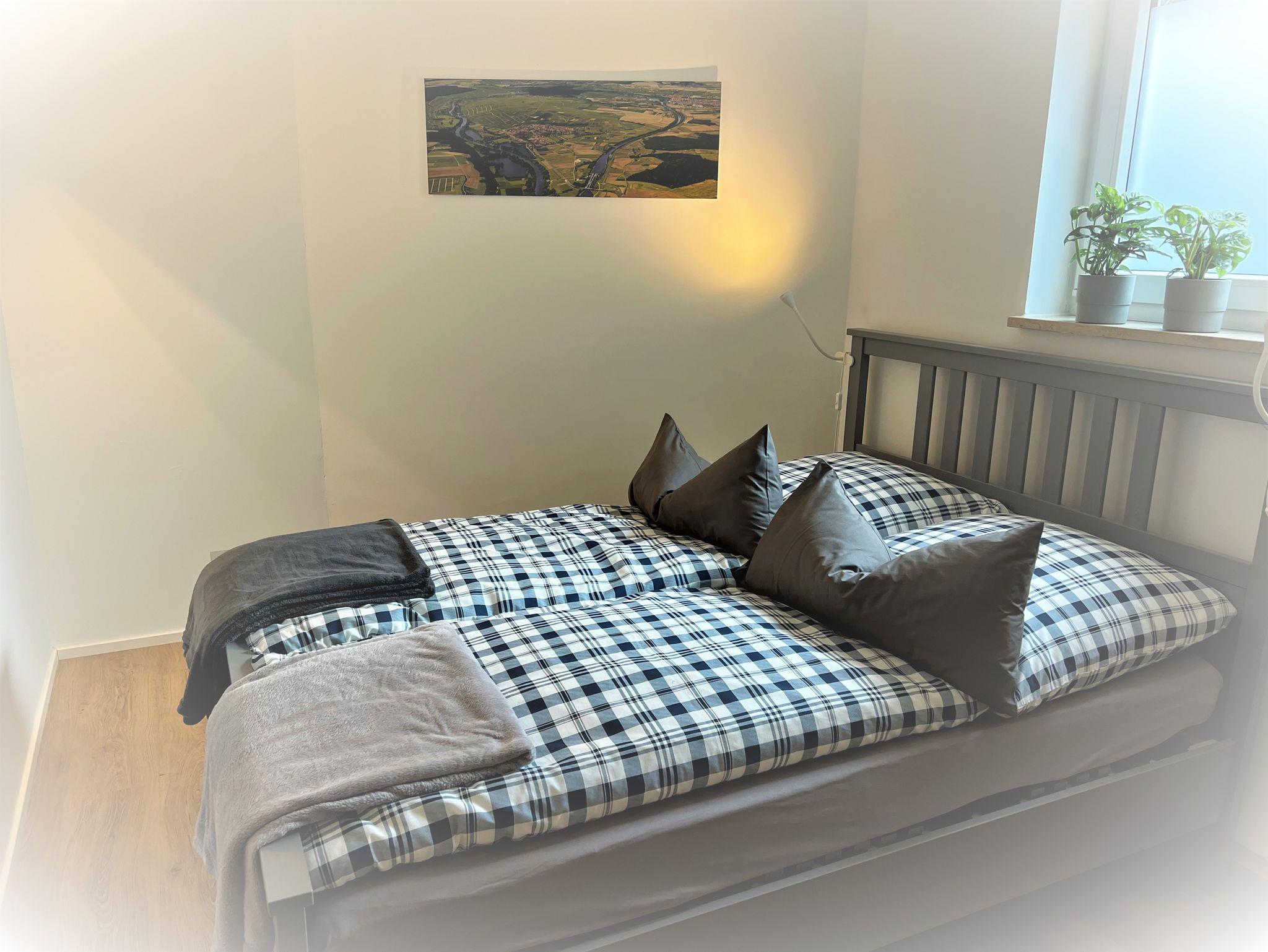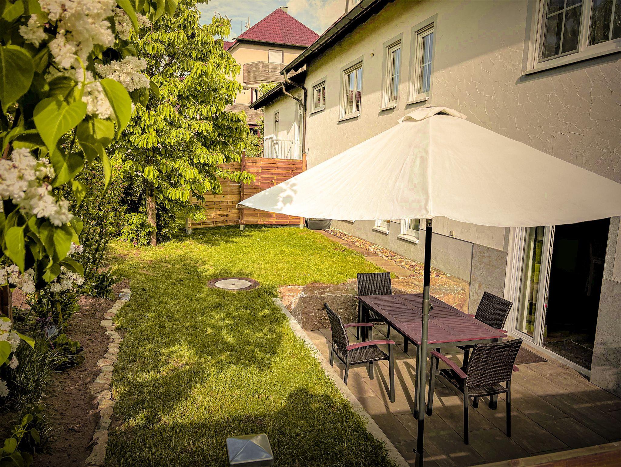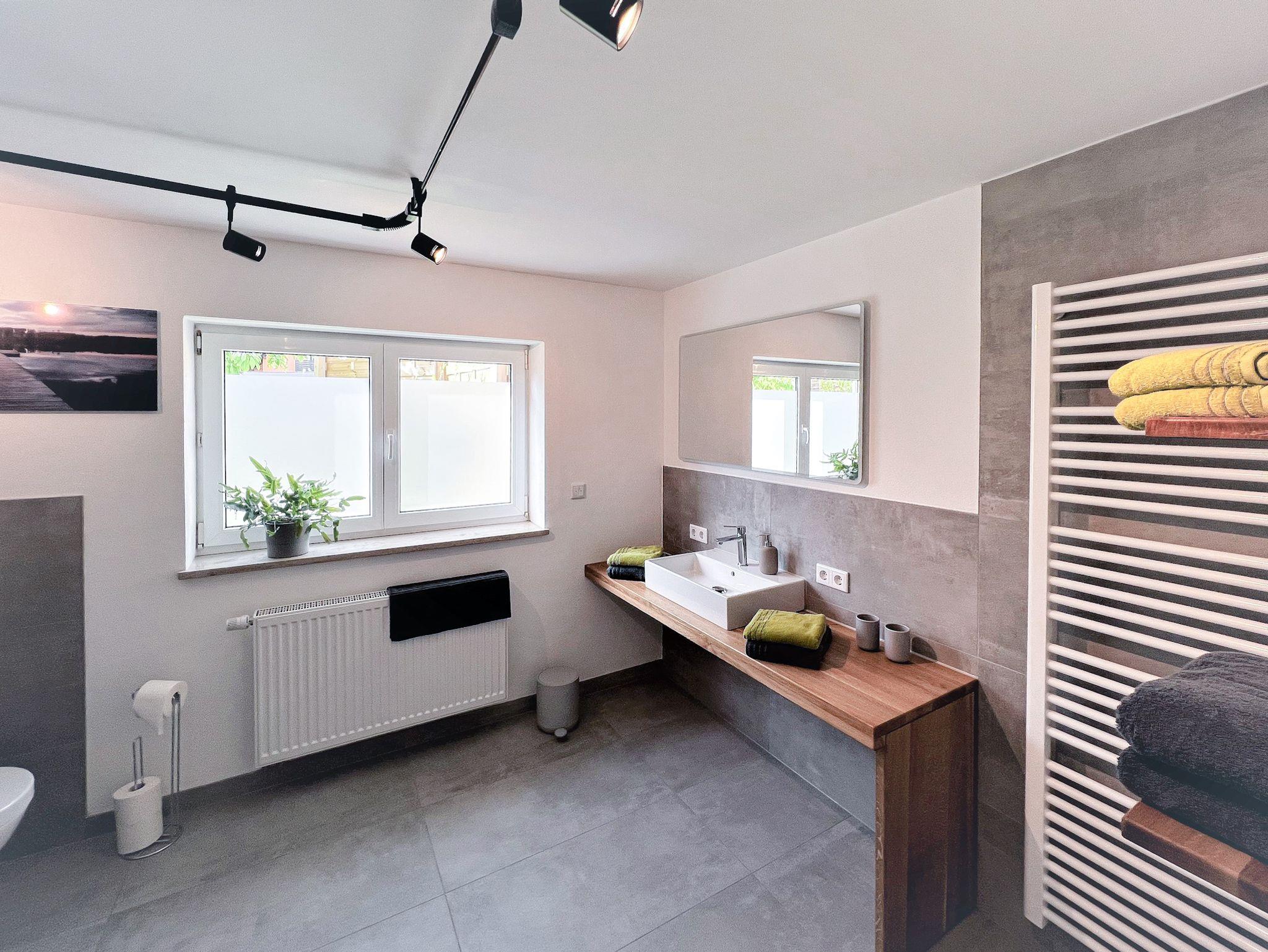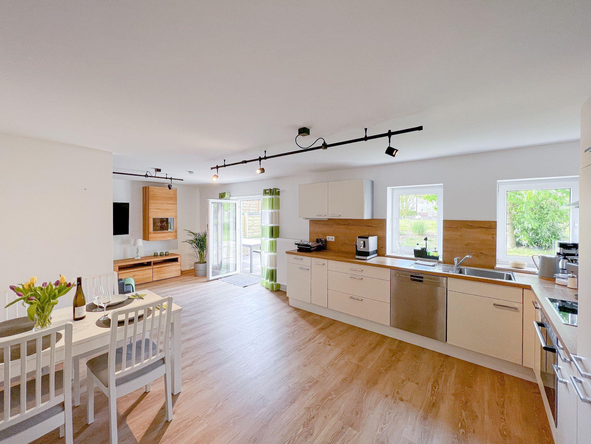 Die auf 75 qm neu renovierte Ferienwohnung befindet sich in einem Zweifamilienhaus im Souterrain und bietet einen Ausgang mit eigener Terrasse in den ruhig gelegenen Garten mit eigenem Gartenanteil und Liegewiese. Die Ferienwohnung verfügt über ein modernes Bad mit bodengleicher begehbarer Wellnessdusche. Die moderne Küche ist vollwertig ausgestattet und lädt an einem gemütlichen Esstisch mit vier Sitzplätzen zum Verweilen ein. Das anschließende Wohnzimmer ist durch die nahe Terrassentür sehr hell und eine bequeme Kuschelcouch mit großem Flat-TV macht die Abende ausgesprochen komfortabel. Darüber hinaus kann der Gast über zwei separate Schlafzimmer verfügen und einen vor dem Haus reservierten Parkplatz sowie kostenloses WLAN und überdachte Fahrradabstellmöglichkeiten kostenlos nutzen.