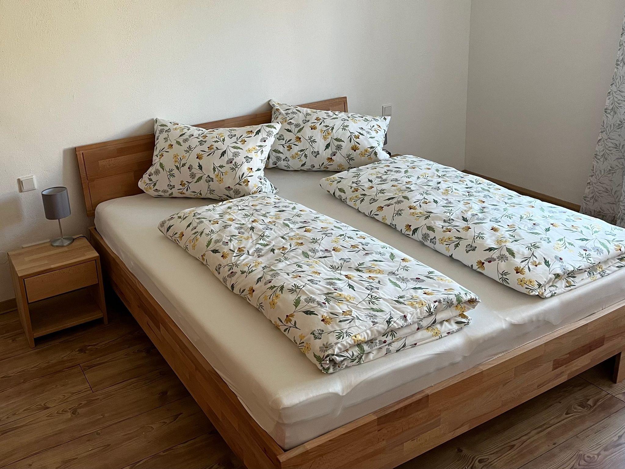 Ferienwohnung Fridolin ist gemütlich eingerichtet mit ca. 115 qm Wohnraum für bis zu 7 Personen. Es gibt drei separate Schlafzimmer. Eines davon mit Doppelbett, die anderen mit Einzelbetten. Im Wohnzimmer befindet sich eine Schlafcouch. Die Küche ist ausgestattet mit Kühlschrank, Gefrierfach, E-Herd, Spülmaschine, Mikrowelle, Kaffeemaschine und Toastautomat. Das Badezimmer ist mit Toilette, Dusche und Wanne ausgestattet. Die Wohnung hat einen Farb-TV mit Sat-Empfang und Radio.