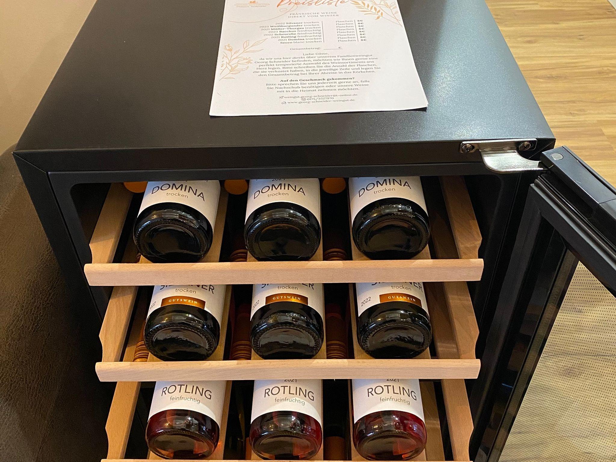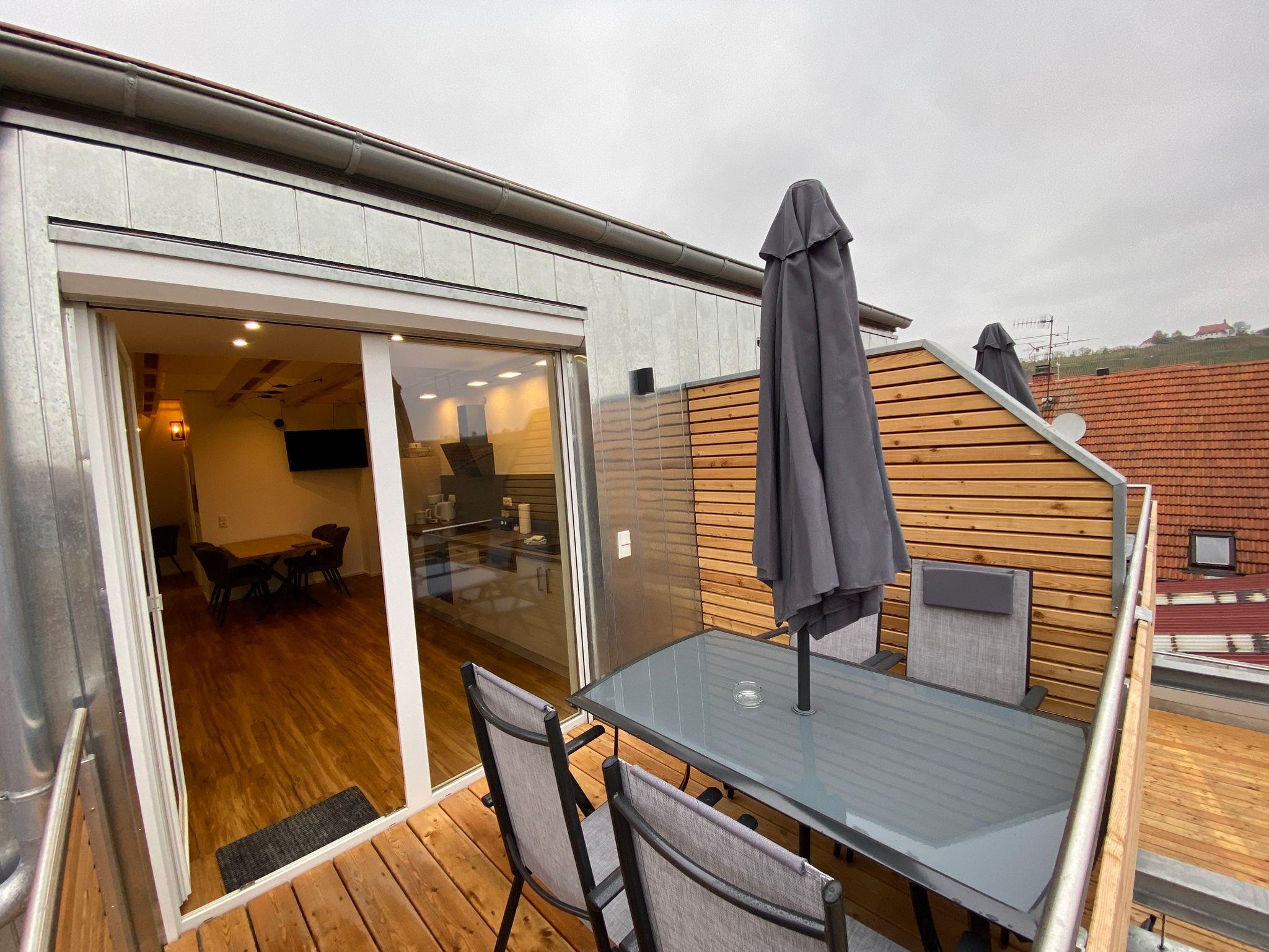 Sie verfügt über zwei getrennte, großzügige Schlafzimmer. Das eine ist mit einem Doppelbett (180x200cm) ausgestattet, das andere mit zwei komfortablen Einzelbetten(90x200cm). Der offene und großzügig geschnittene Wohnbereich lädt zum Verweilen ein. Integriert ist die ist die gut ausgestattete Küchenzeile. Sie enthält unteranderem einen Backofen mit zugehörigem Cerankochfeld, eine Kaffeemaschine, Wasserkocher, Toaster, Mikrowelle und ausreichend Geschirr. Für heiße Tage steht Ihnen eine Klimaanlage zur Verfügung. Angrenzend an den Wohnbereich liegt ein großer Balkon mit Blick über die Dächer Nordheims und auf die Weinlage Escherndorfer Lump. Sie ist ausgestattet mit Gartenmöbel für das ein oder ander Glas fränkischen Weins im Freien.