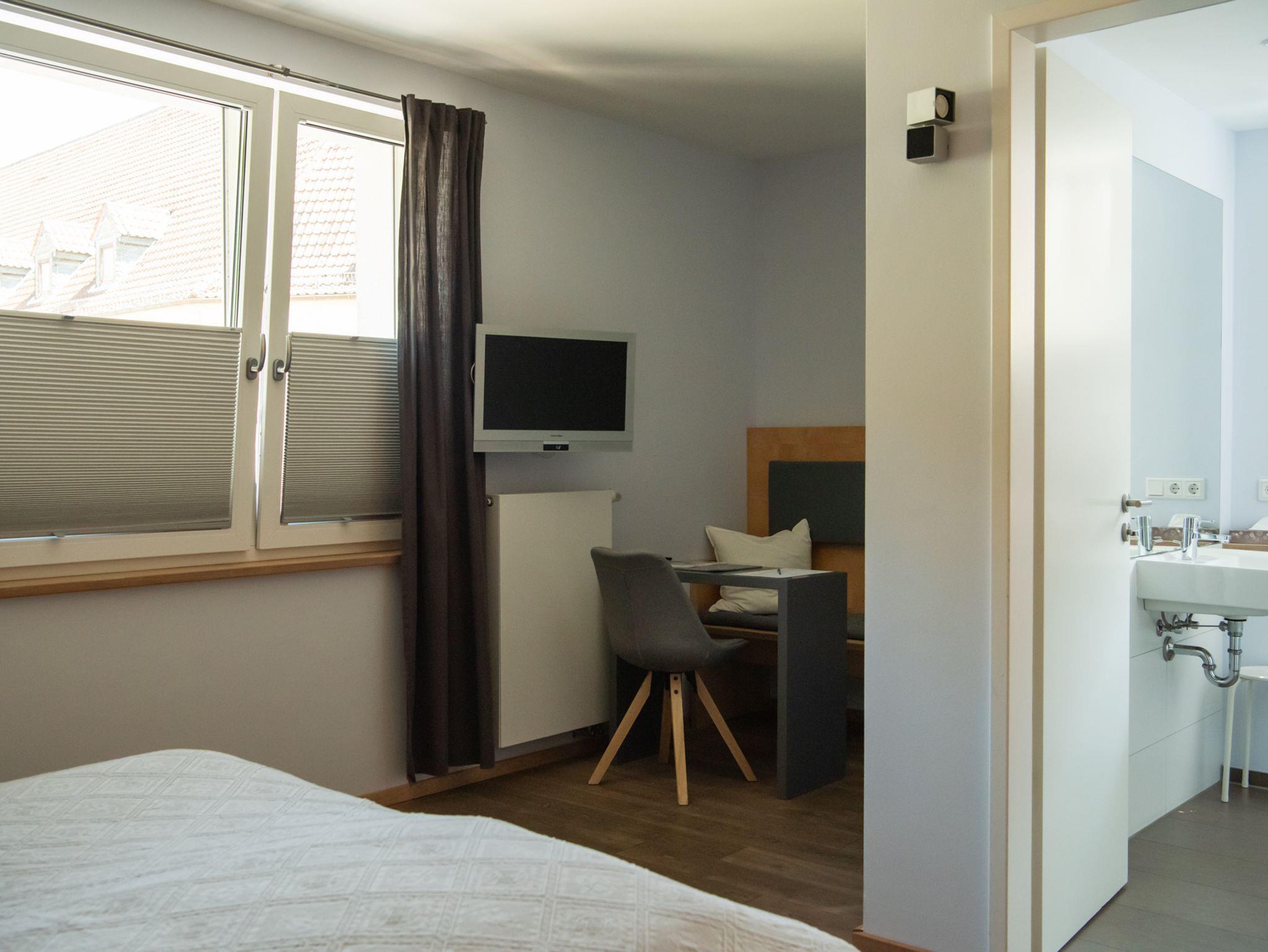 Unsere 2 Doppelzimmer überzeugen durch moderne Gemütlichkeit und bieten Platz für bis zu 2 Personen. Beide Zimmer befinden sich in der 1. Etage in unserem Haupthaus. Ausgestattet sind sie mit einem Doppelbett aus Schreinerhand, einer Sitzecke und einem geräumigen Badezimmer mit Dusche.
