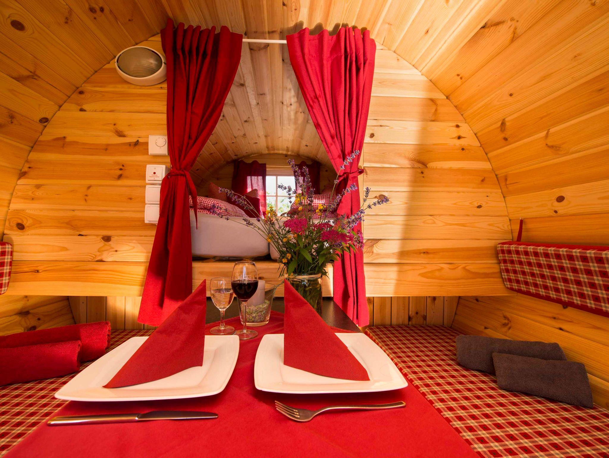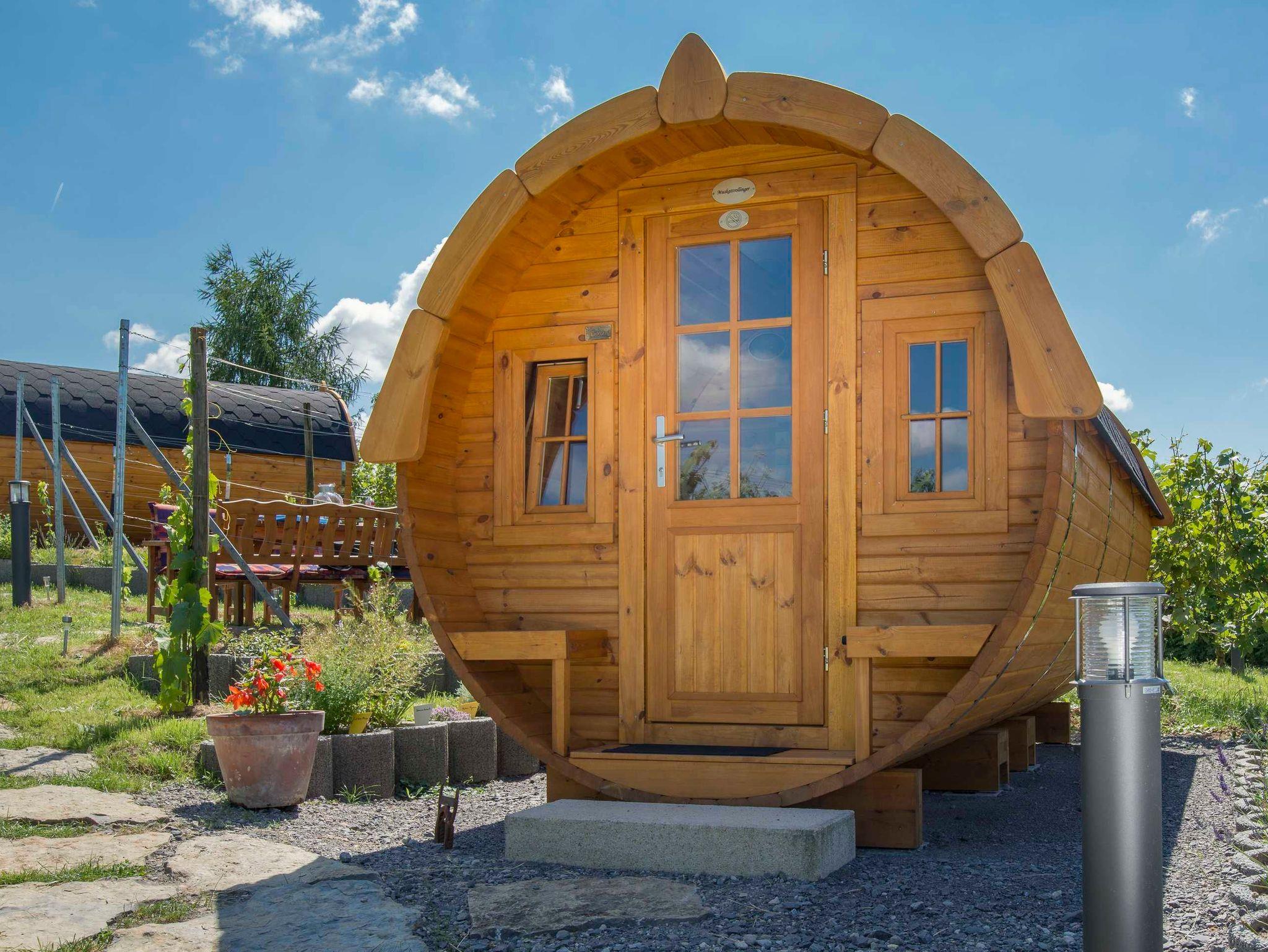 Es gibt insgesamt 3 rustikale Schlaffässer direkt im Weinberg.
