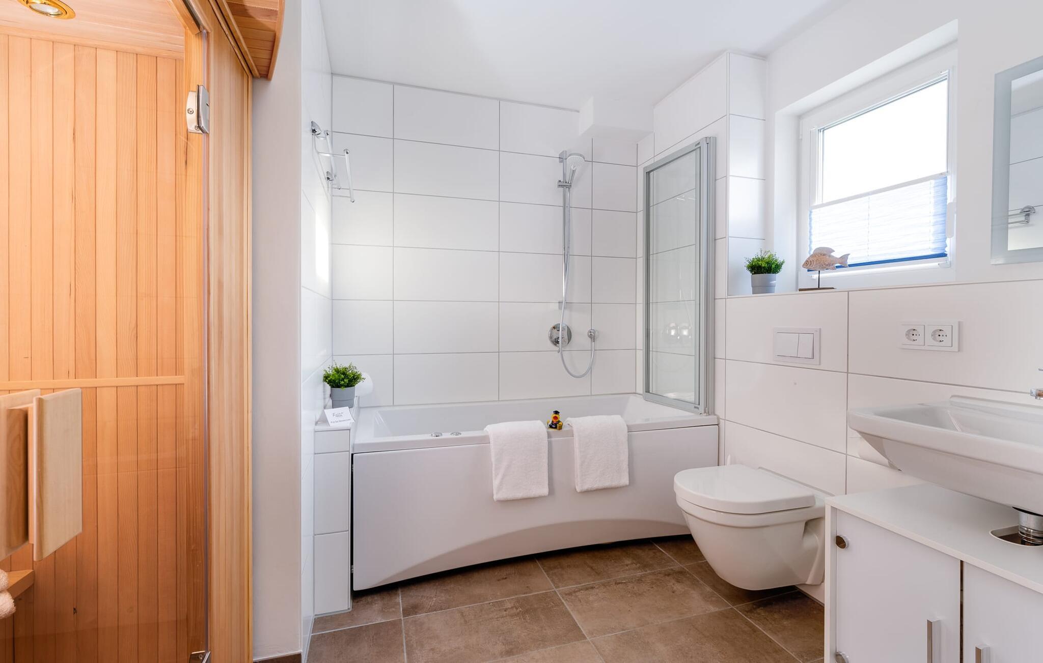 Østersøen, sandstranden Weidefelder og sejl- og sportsbådshavnen i OstseeResort Olpenitz kan nås på mindre end 5 minutter til fods. En infrarød varmekabine med hi-fi lydsystem og LED farvelysterapi er tilgængelig for wellnesselskere. Et afslappende spabad inviterer jer også til at slappe af efter en lang gåtur på stranden.