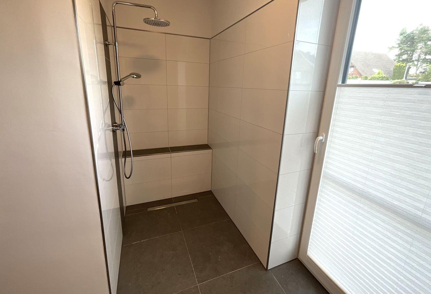 Bad und Sanitär: Sauna, bodentiefe, barrierefreie Sommerregendusche, Waschtischanlage mit Spiegel, Föhn, WC, Handtuchheizung, Waschmaschine, Trockner, Wäscheständer