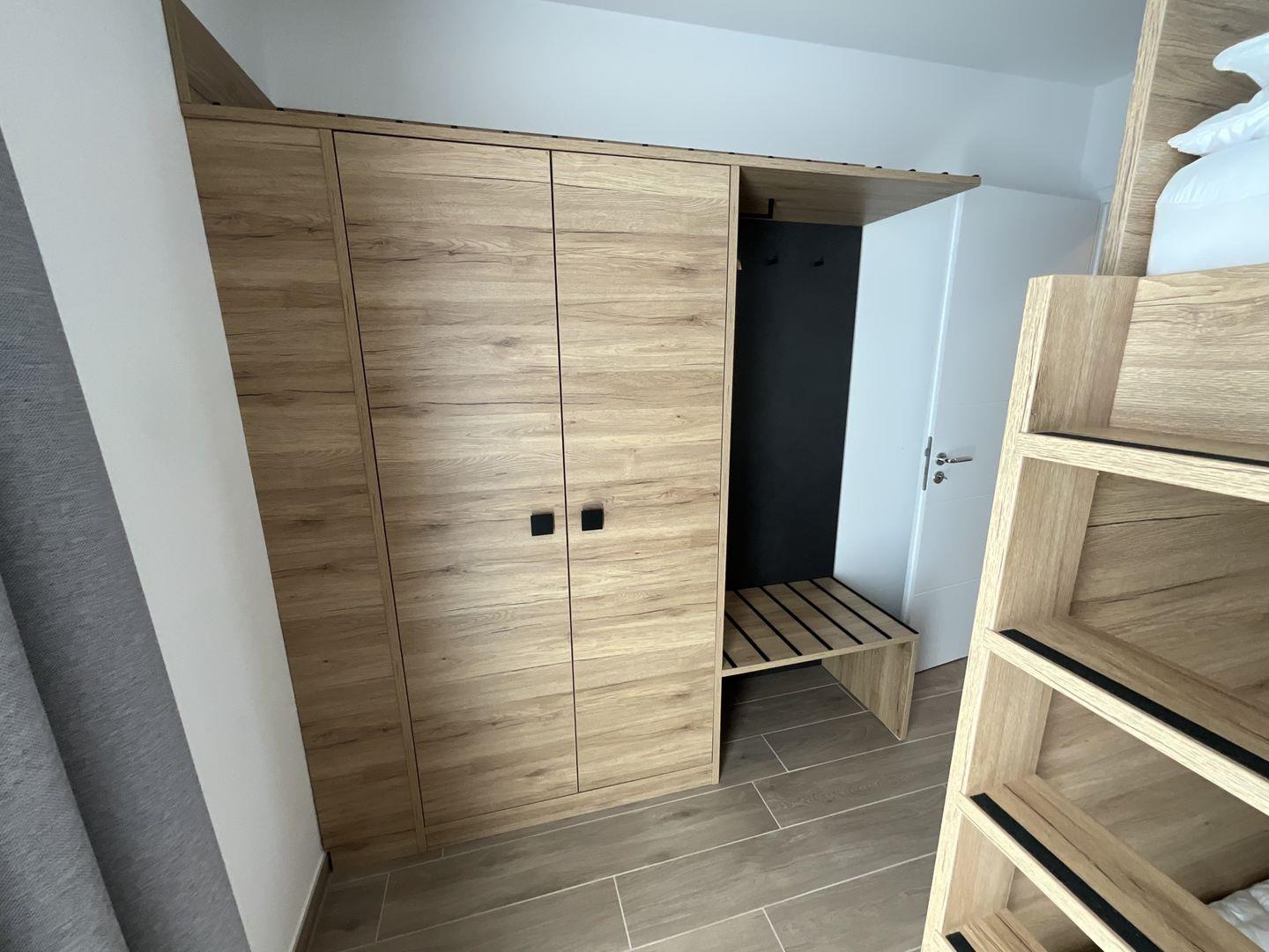 Schlafzimmer 2: Etagenbett (Maße: 2 x 90x200 cm), Flat-TV, Leselampen, Kleiderschrank, Verdunkelungsvorhänge