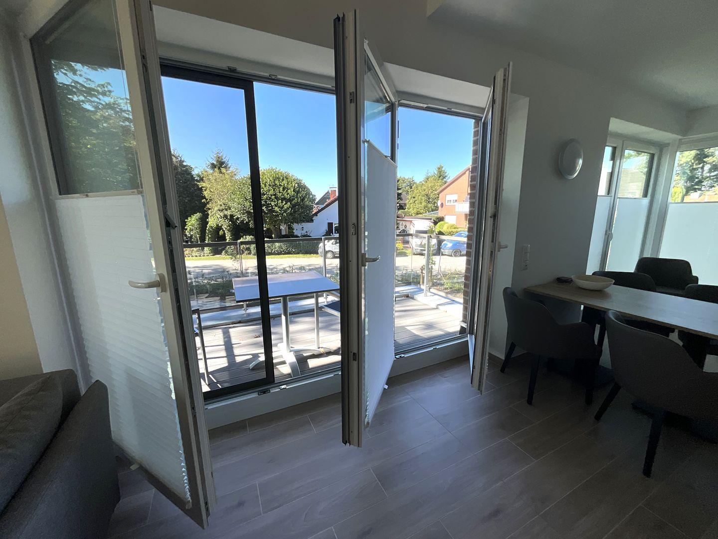 Ein weiteres Highlight ist der einladende Balkon, auf dem Sie mit Gartenmöbeln ausgestattet entspannte Stunden an der frischen Nordseeluft genießen können. Der zur Unterkunft gehörende Privatparkplatz bietet einen Stellplatz für Ihr Fahrzeug.