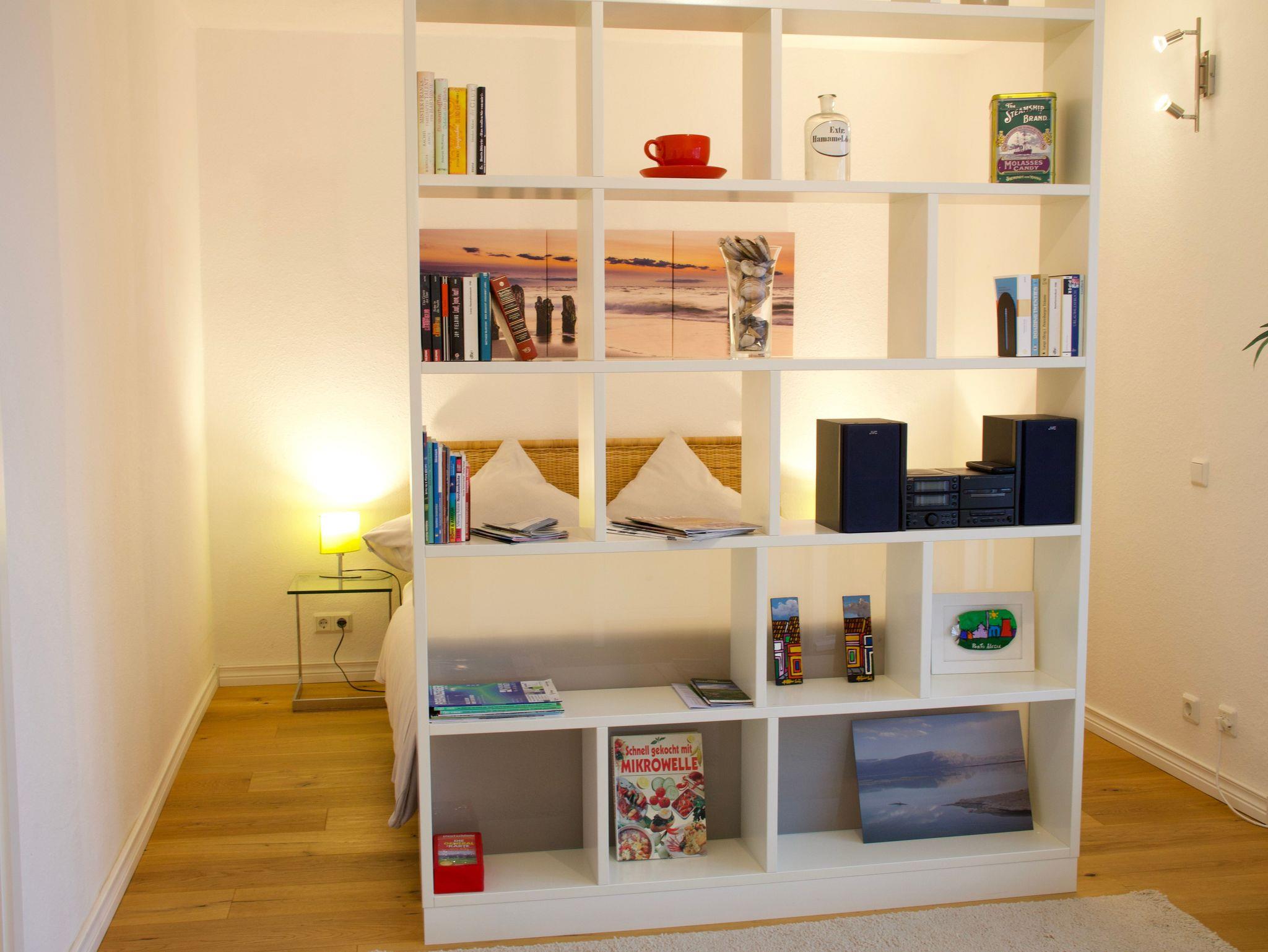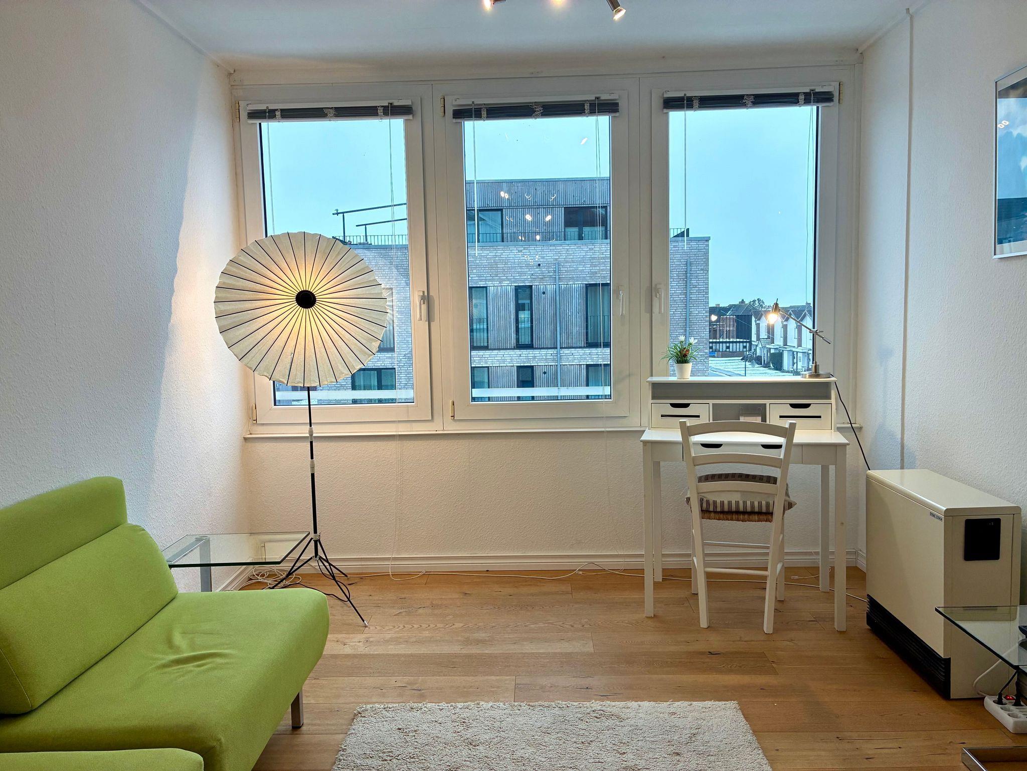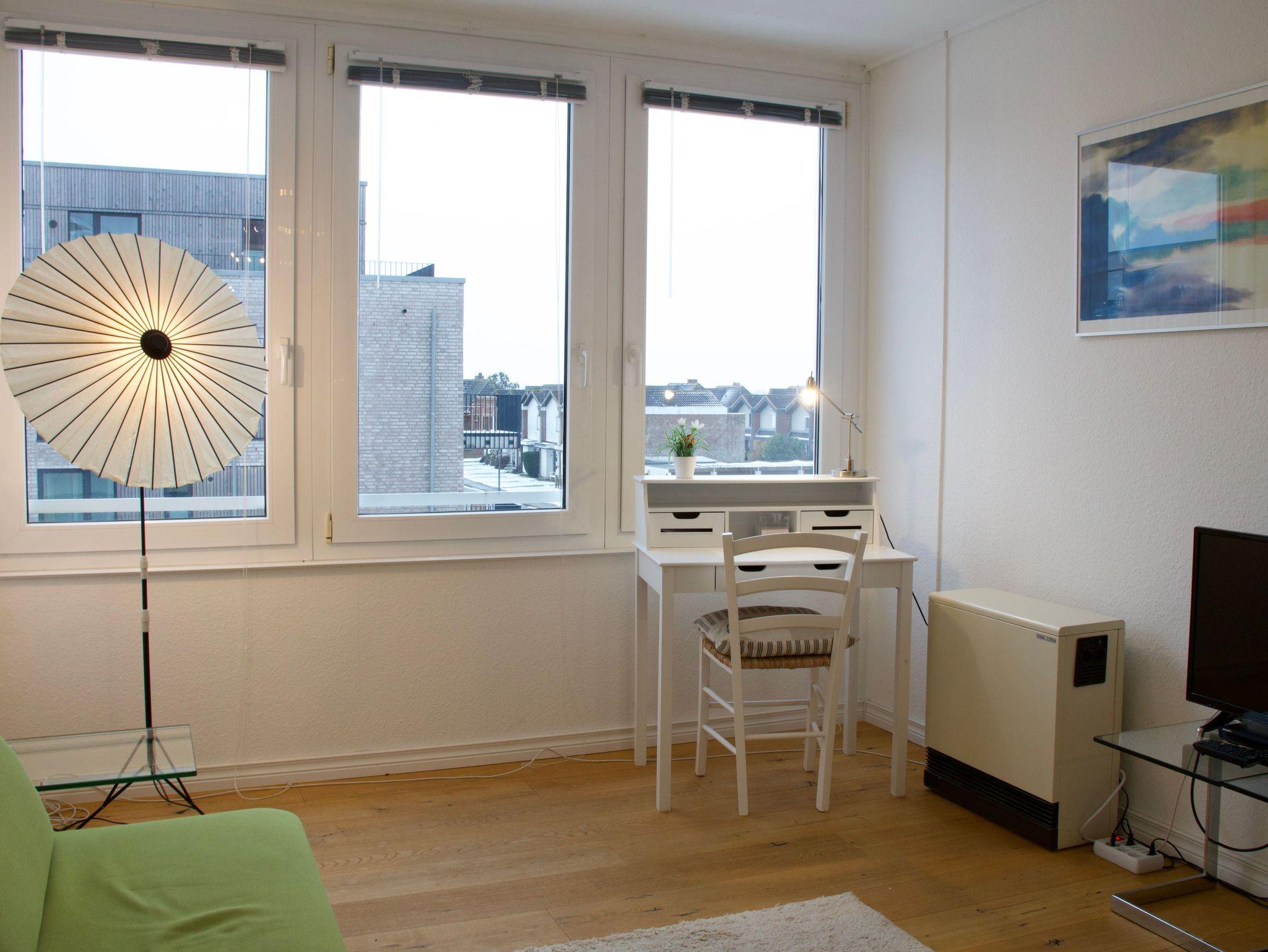 Das Studio 21 bietet einen hellen, klar gestalteten Rückzugsort für zwei Personen. Die Wohnung wirkt offen und ruhig, große Fenster lassen viel Tageslicht herein und schaffen eine freundliche, entspannte Atmosphäre.