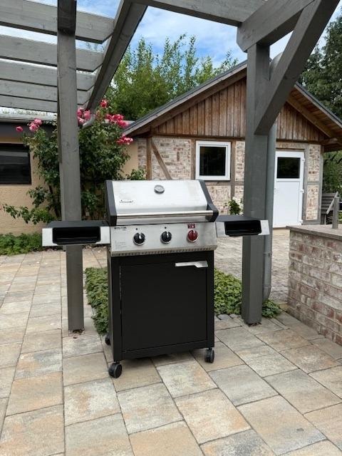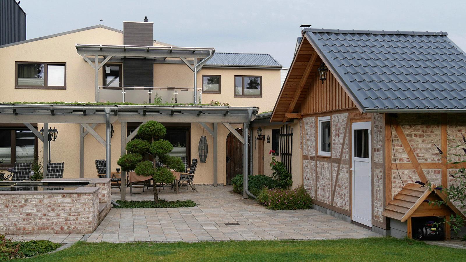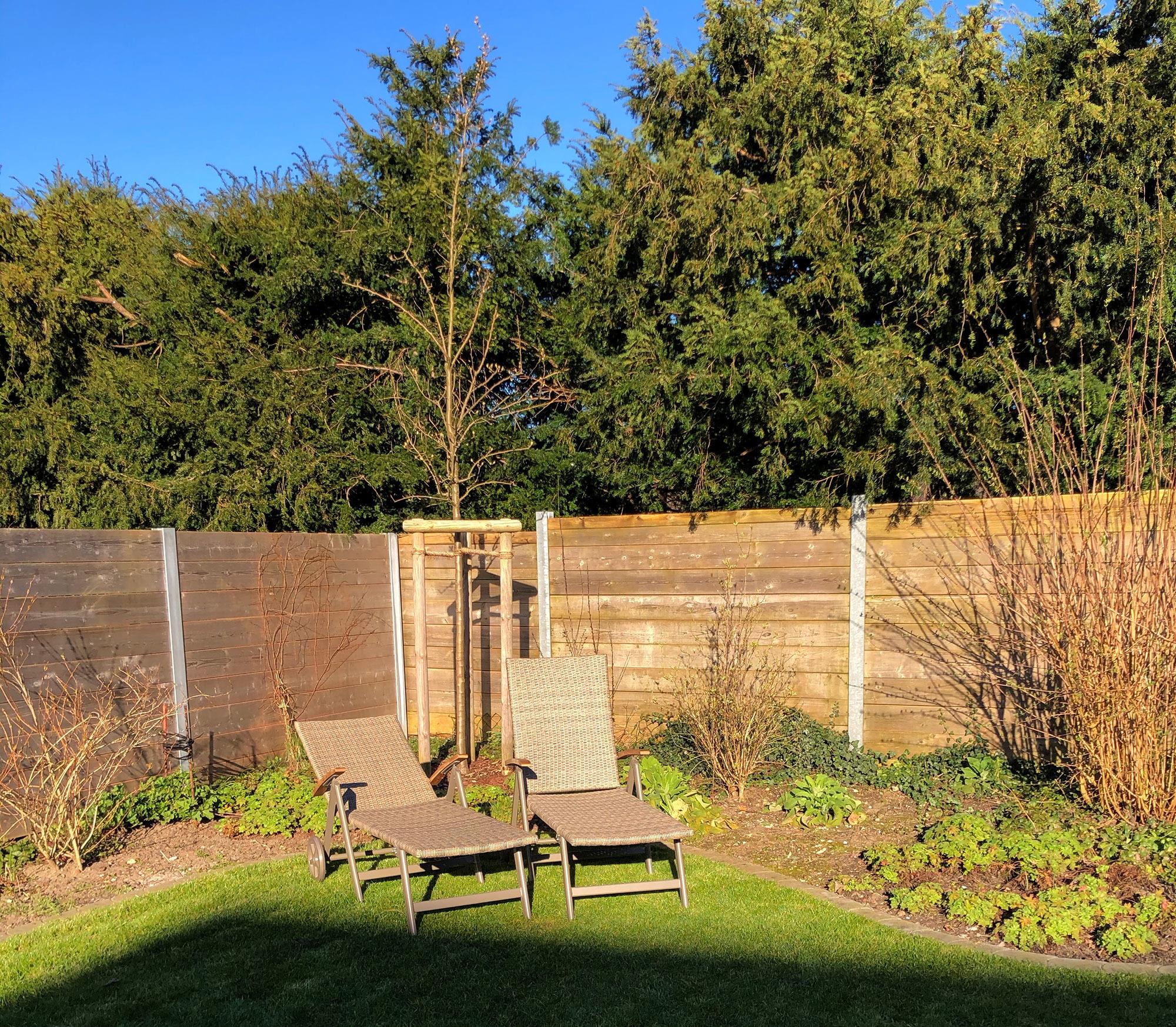 Die gesamte Wohnung ist mit Fliesen und Laminatboden ausgelegt und daher auch für Allergiker geeignet. Der Garten steht exklusiv den Gästen der FeWo 03 zur Verfügung. Hier finden Sie einen zwei Meter tiefen gemauerten Koi-Teich mit derzeit sieben Kois. Die Fische können durch die eingelassenen Teichfenster beobachtet werden, jedoch sollten keine schwimmenden Besucher in den Teich gelangen. Gegen Gebühr steht Ihnen die Gartensauna mit 90°C und Platz für vier Personen zur Verfügung sowie ein Grill. Gartenmöbel sind das ganze Jahr über nutzbar. Die etwa 30 Quadratmeter große gepflasterte Terrasse ist mit Glas überdacht und grenzt direkt an den hinteren Eingang des Gartens.